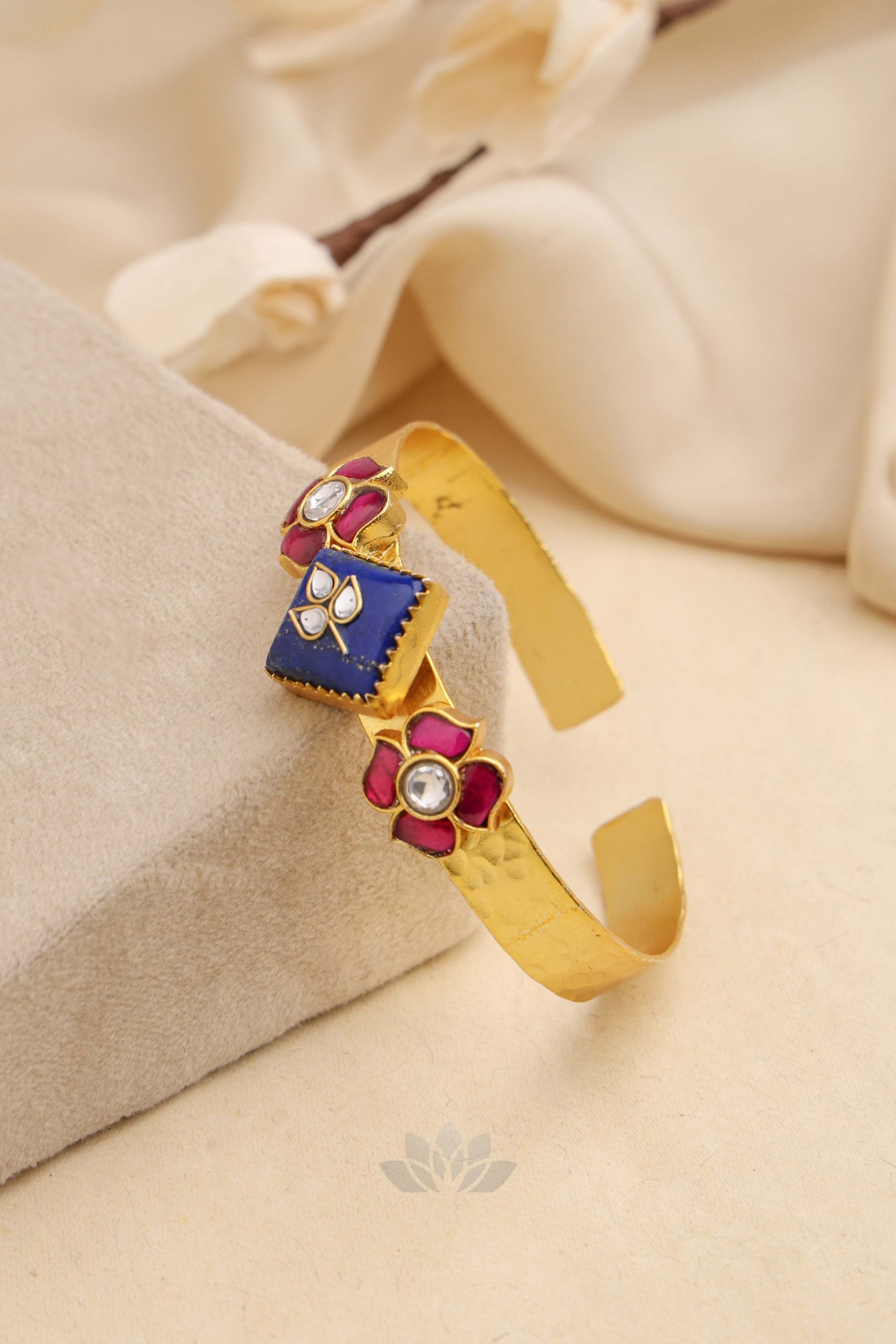 Gold plated 925 Silver – Kundan Cuff Bangle with lapis stone and jadai works on it