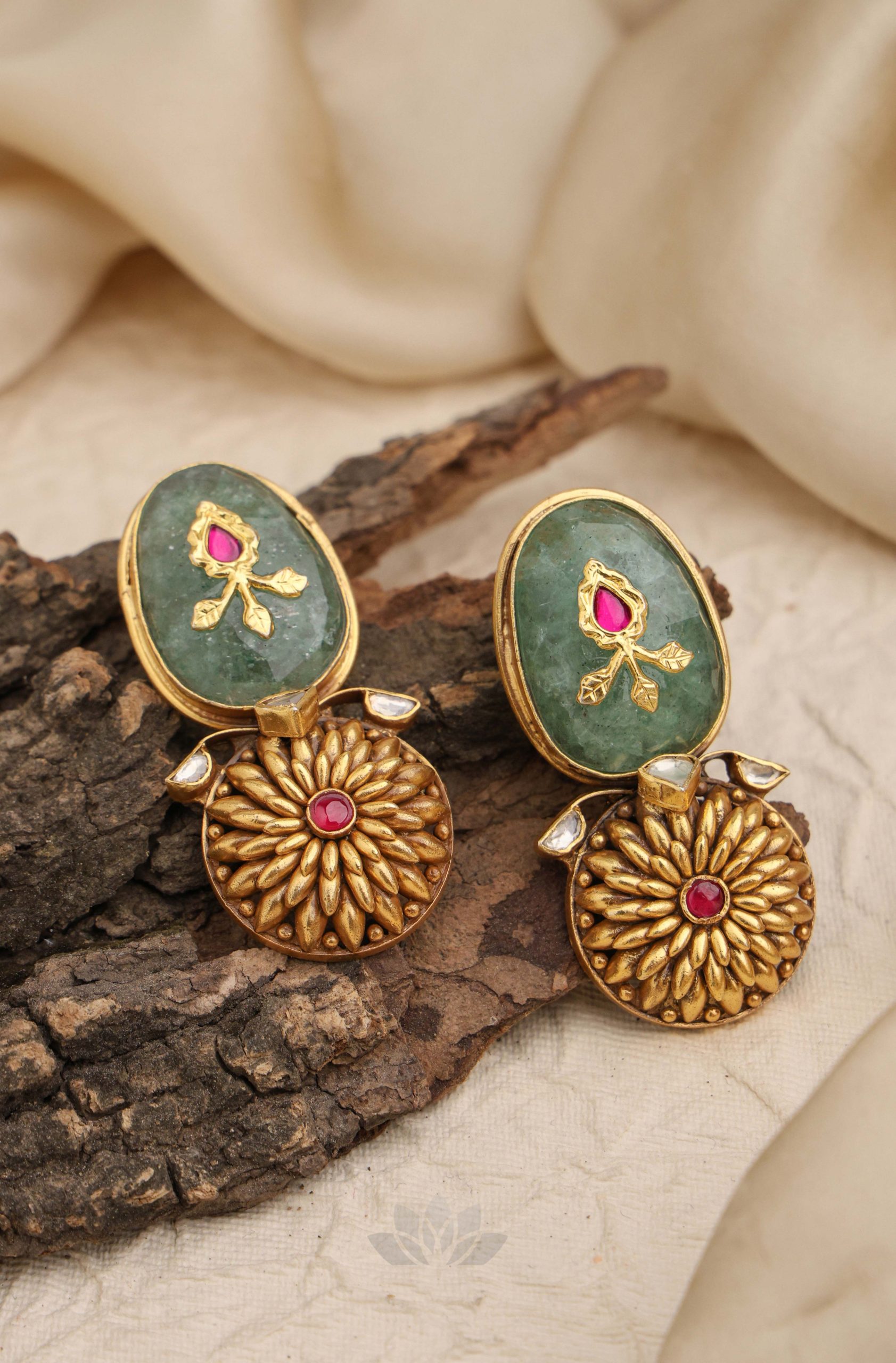 Gold plated 925 Silver – Stone earrings with kundan jadai works on it
