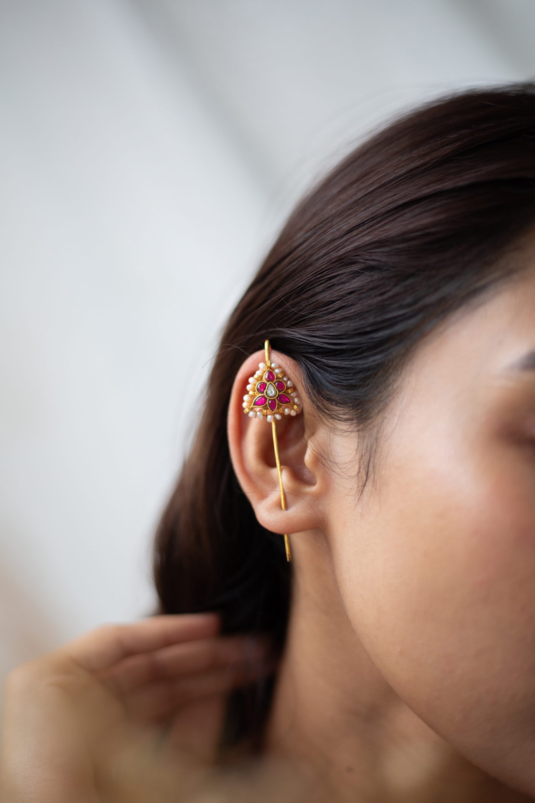 Gold plated 925 Silver – Kundan cuff earrings