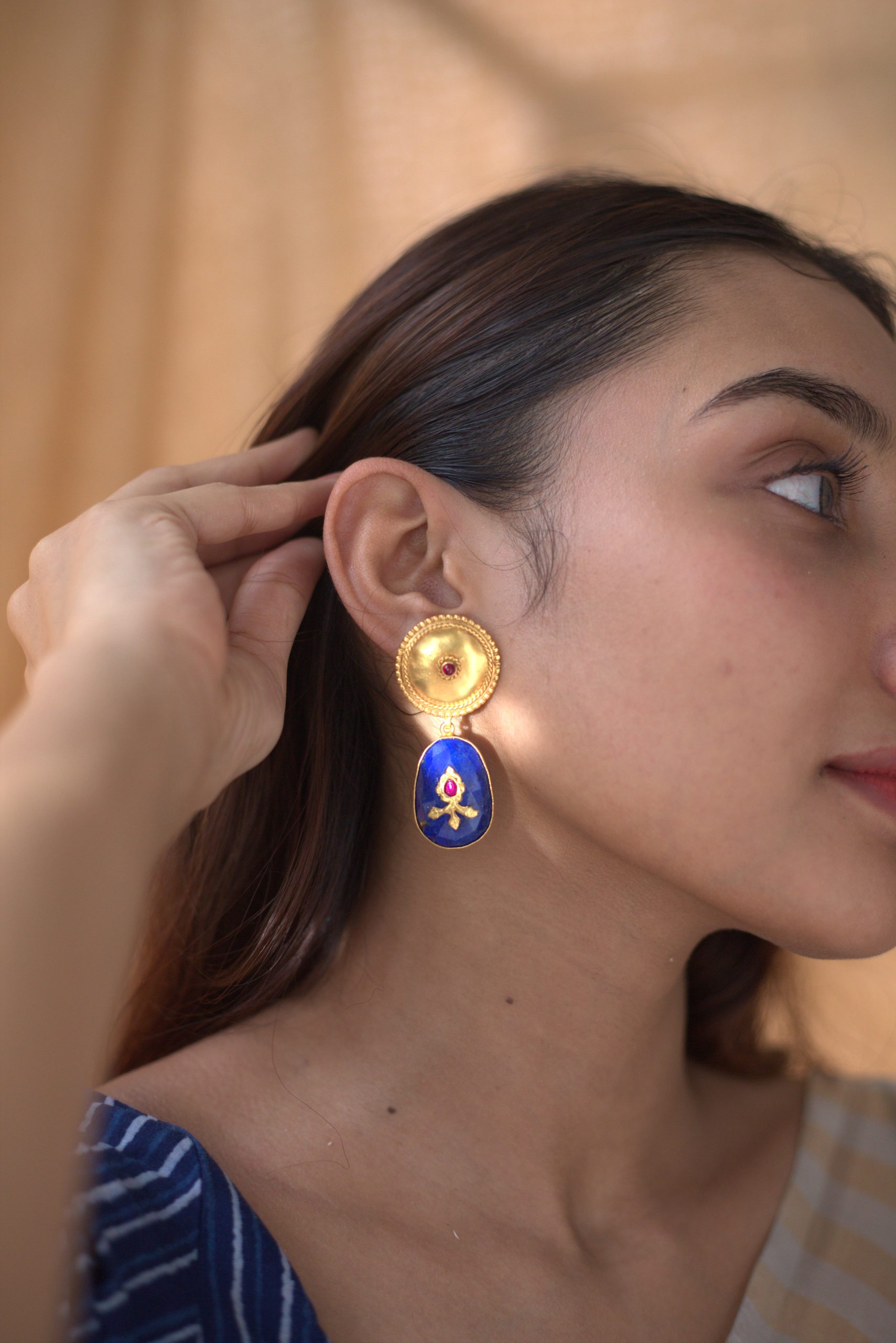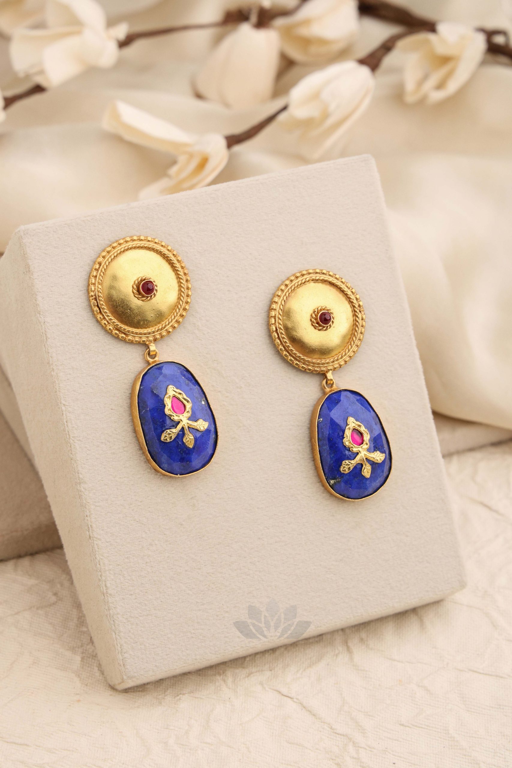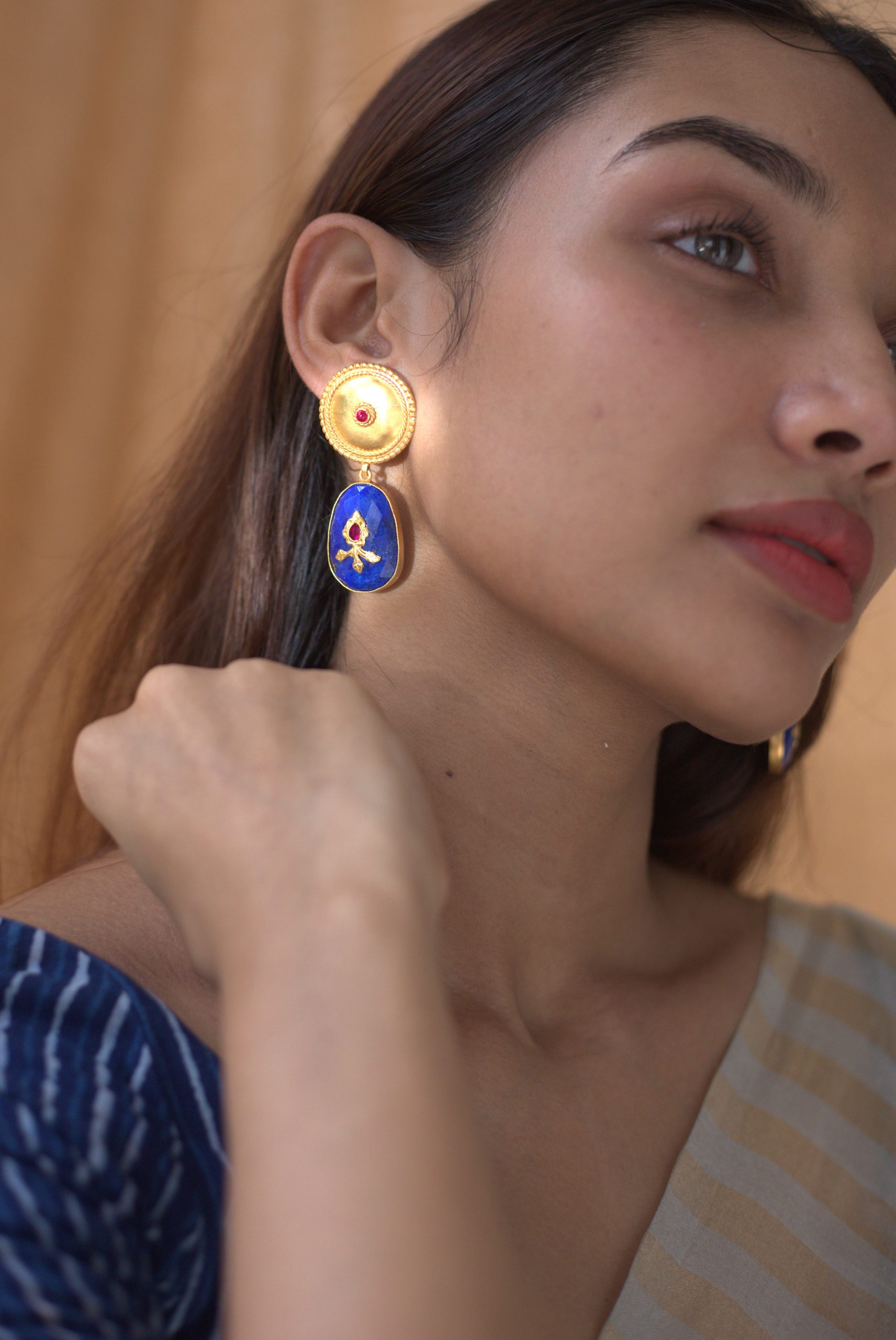 Gold plated 925 Silver – Lapis Stone earrings with kundan jadai works on it