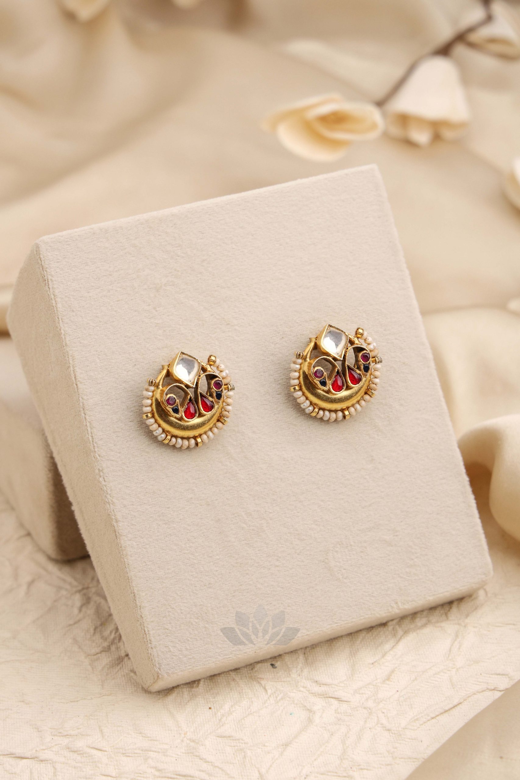 Gold plated 925 Silver – Pearl Kundan Studs