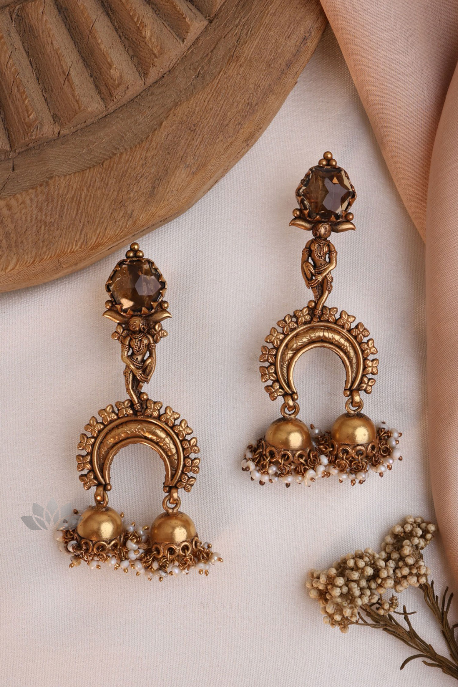 Gold plated 925 Silver – Antiqued finish earrings with mini jhumkas