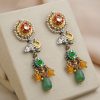 Gold plated 925 Silver – Statement kundan earrings with pearl and bead works and semi precious bead hangings