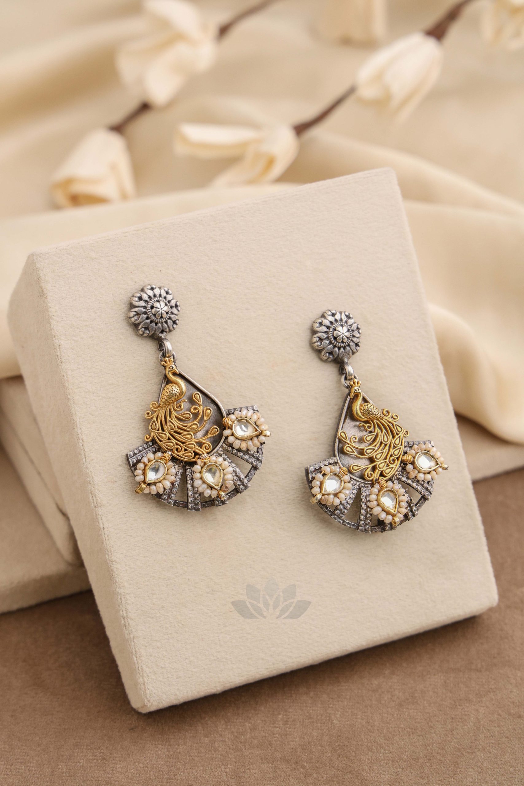 925 Silver – Dual tone kundan earrings