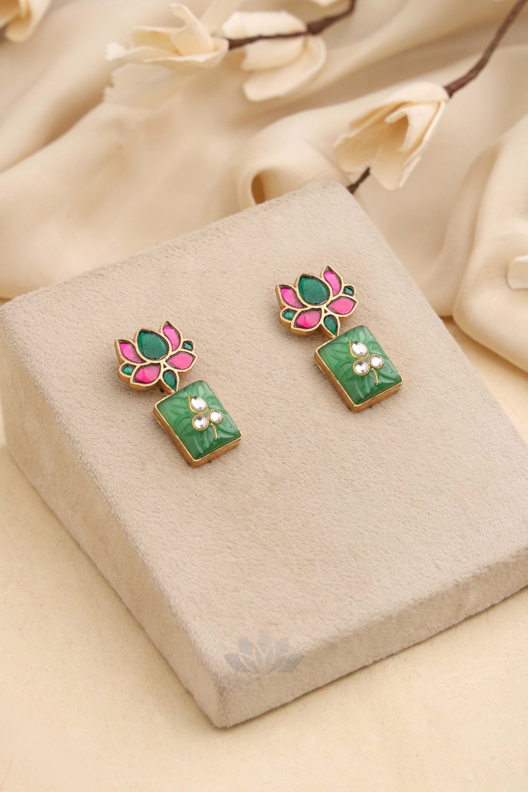 Gold plated 925 Silver – Stone earrings with kundan jadai works on it