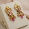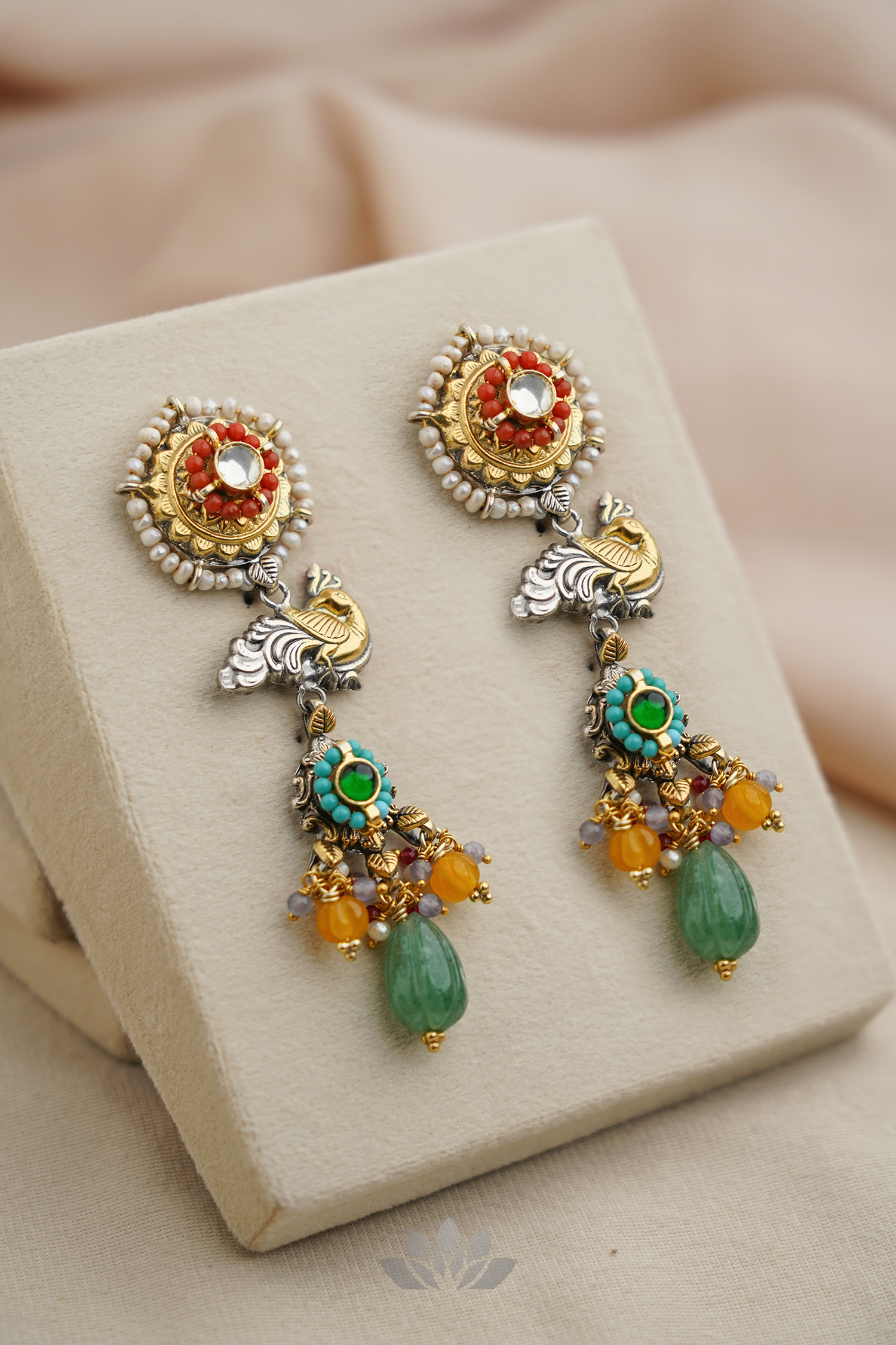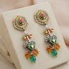 925 Silver – Dual tone statement kundan earrings with pearl and bead works and semi precious bead hangings