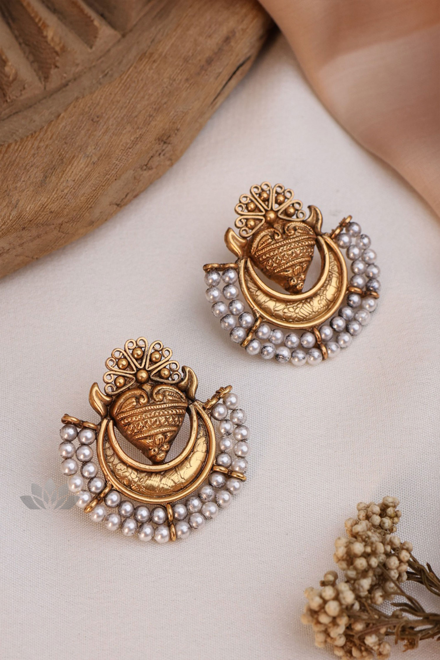 Gold plated 925 Silver – Antiqued finish chandbali earrings with pearls