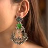 Silver Statement earrings with kundan works