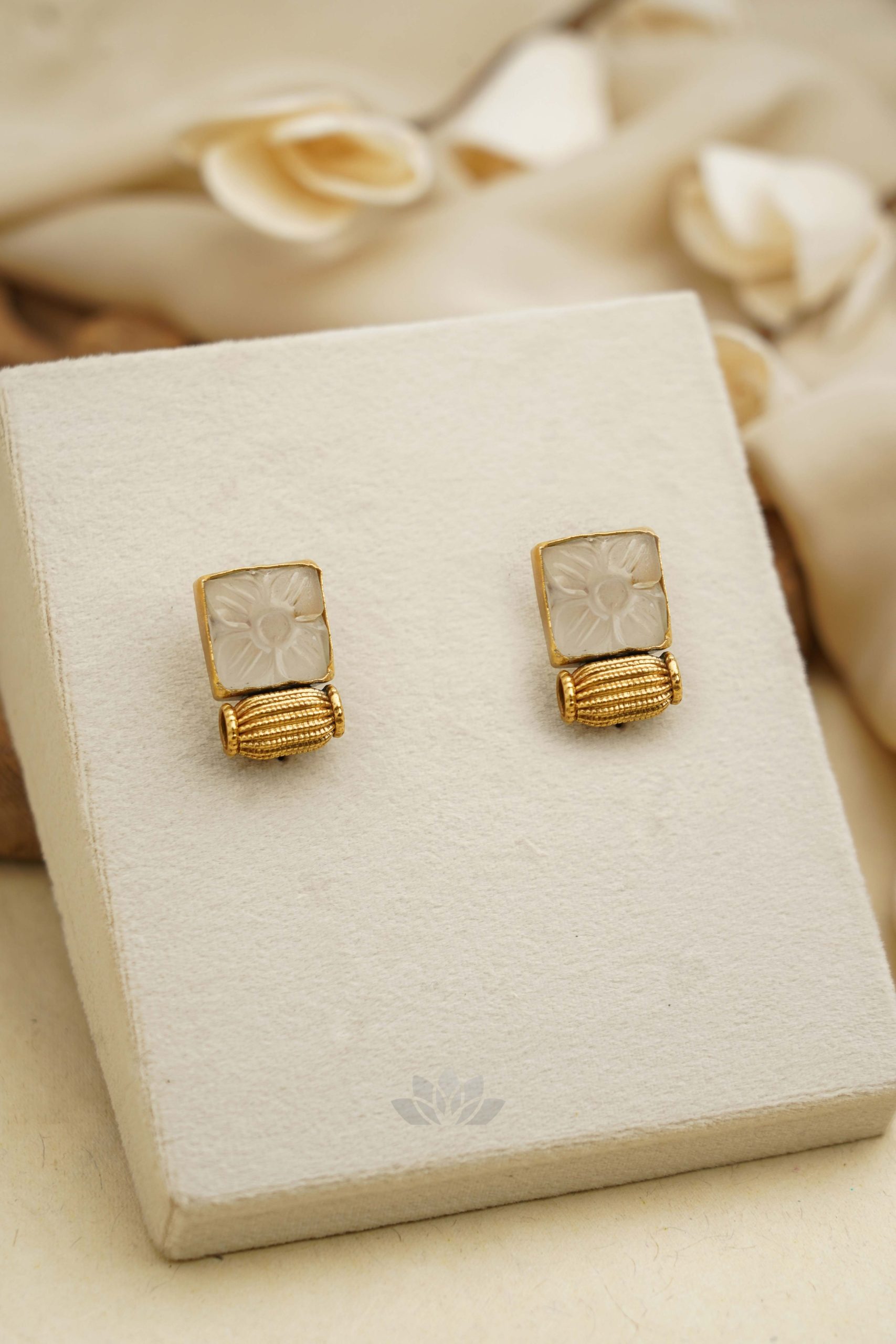 Gold plated 925 Silver – Carved stone studs