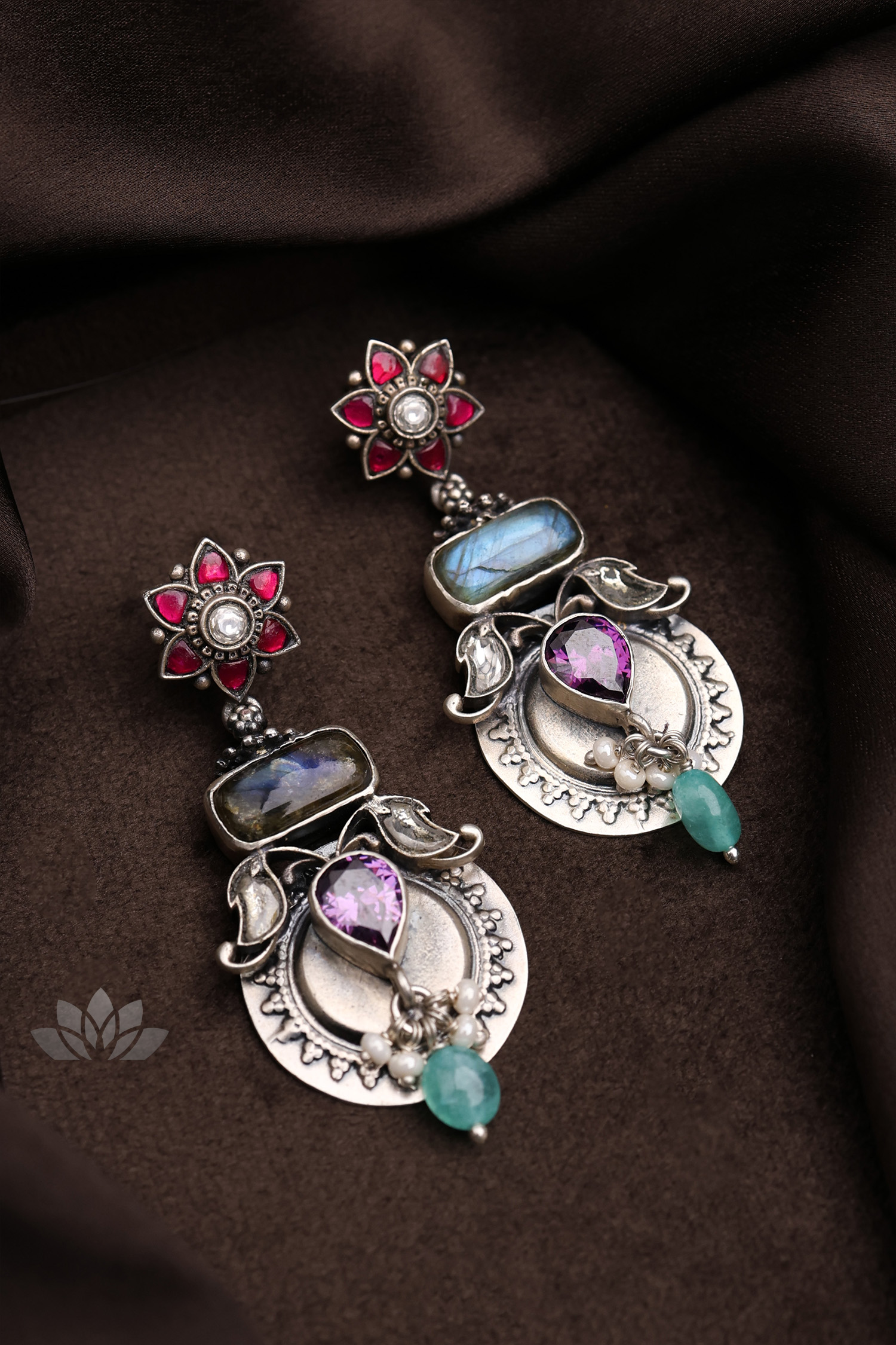 925 Silver – Labradorite and amethyst stone earrings with kundan tops