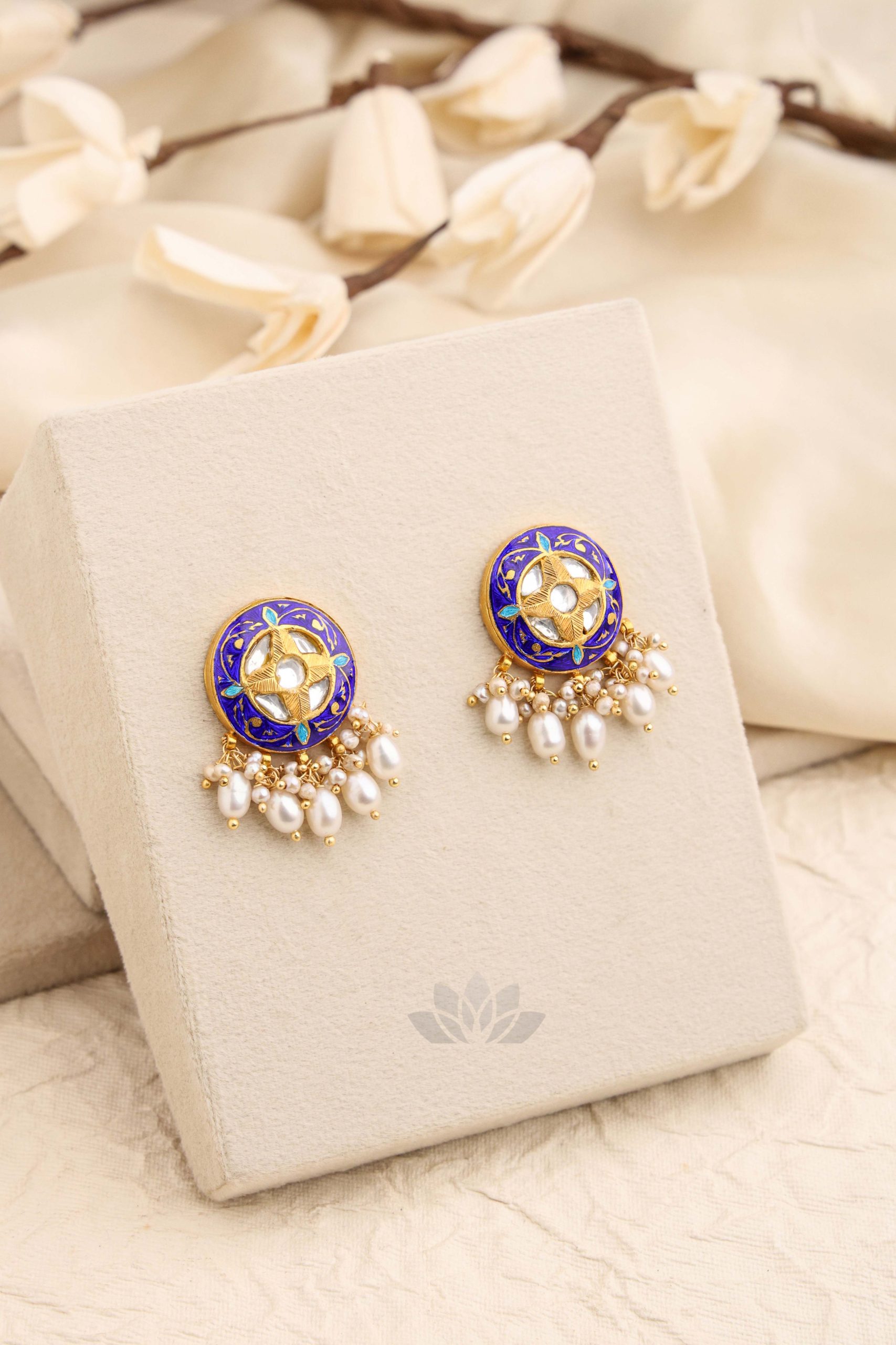 Gold plated 925 Silver – Meenakari studs with kundan works