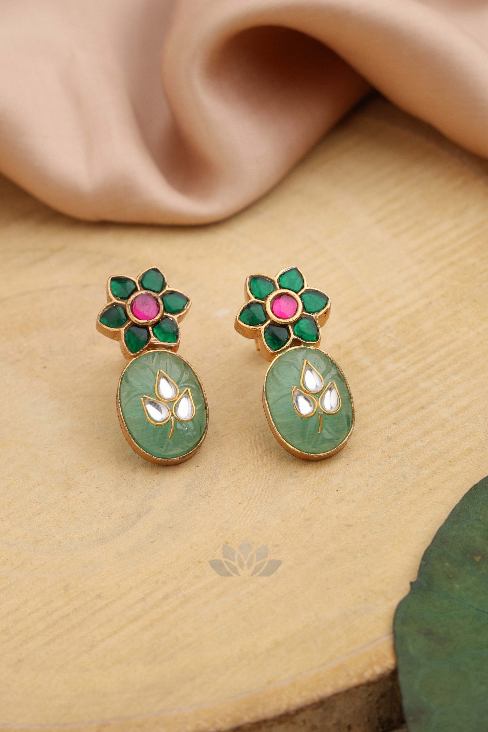 Gold plated 925 Silver – Stone earrings with kundan jadai works on it