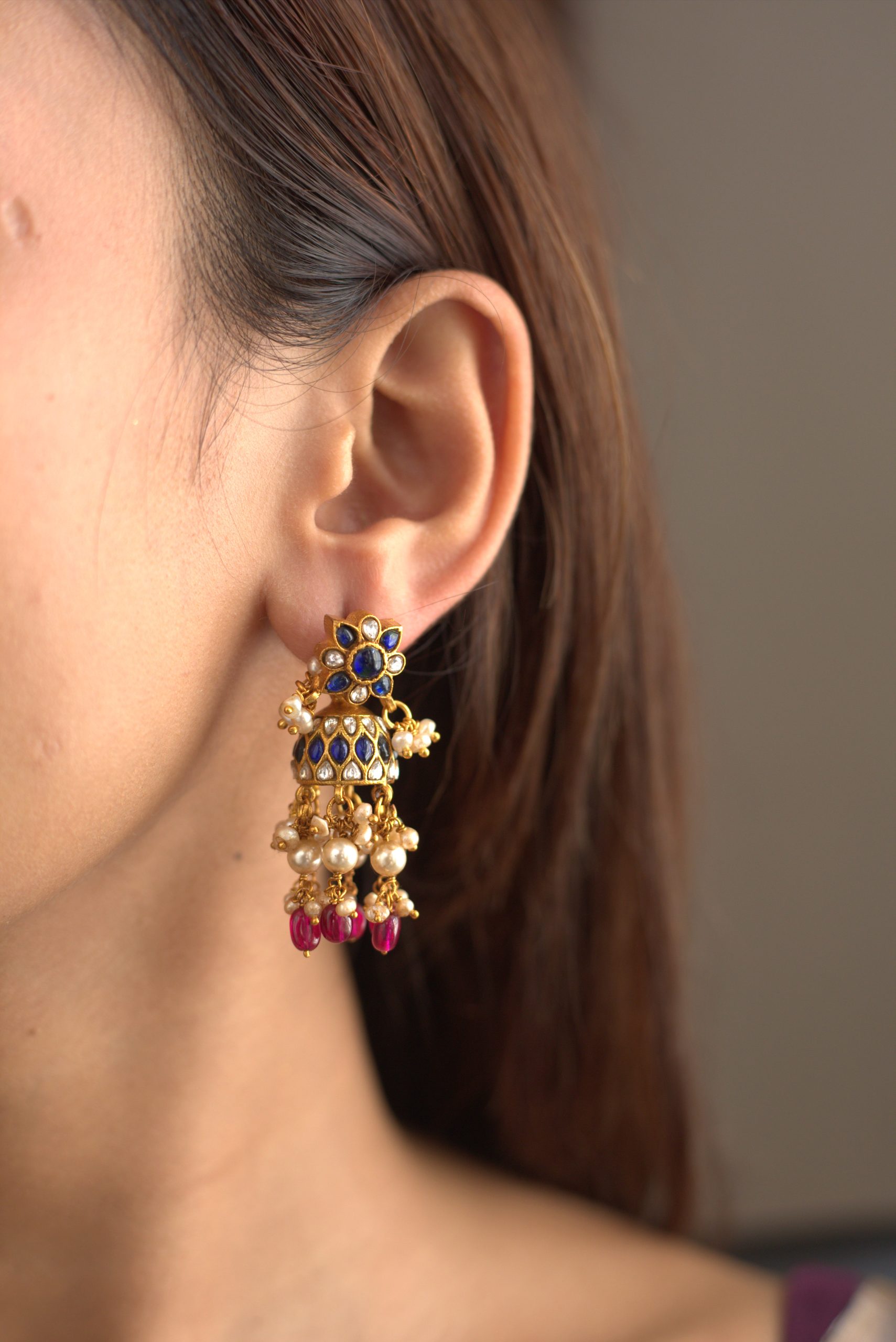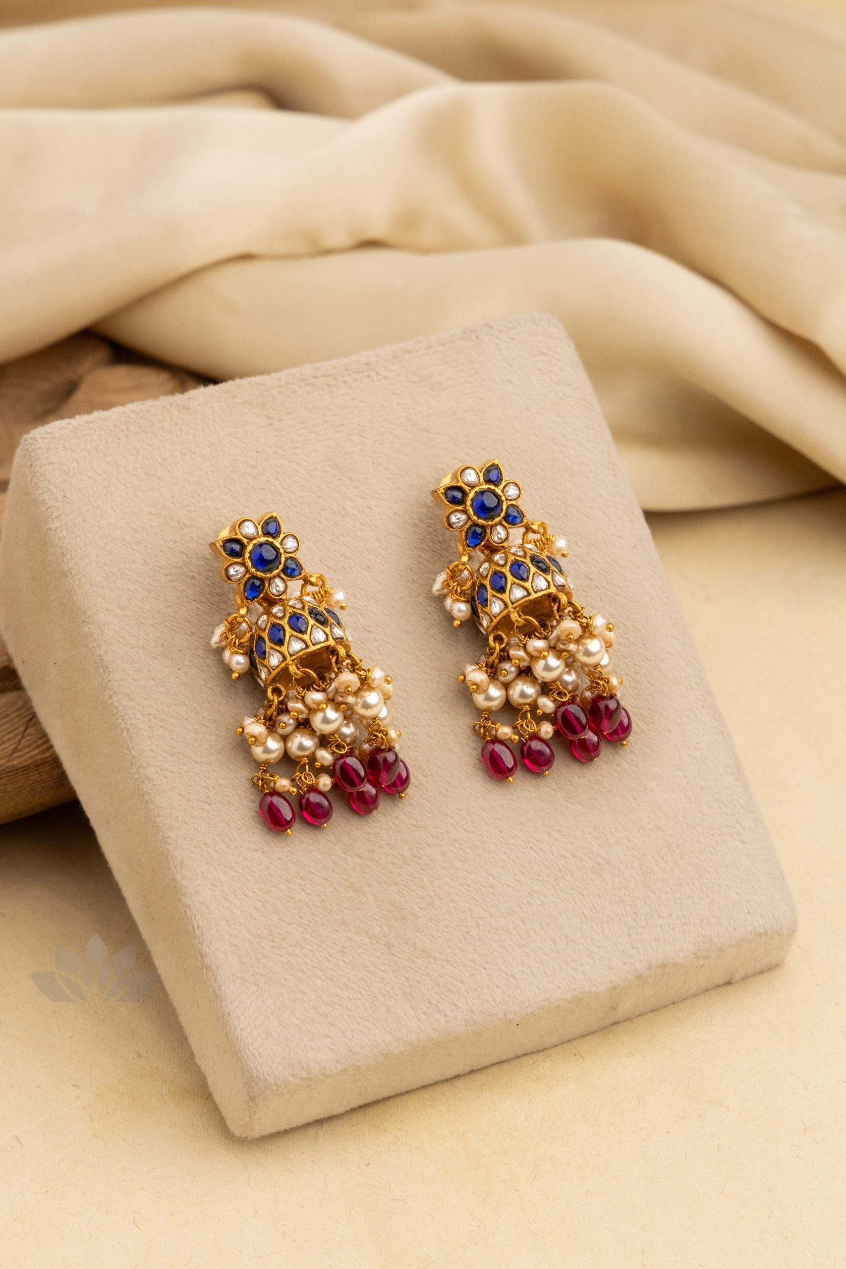 Gold plated 925 Silver – Kundan jhumkas