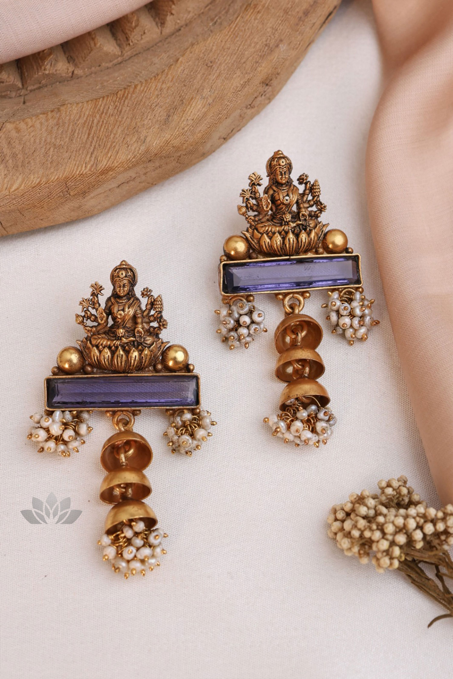 Gold plated 925 Silver – Antiqued polish nakshi lakshmi earrings with jhumka layers