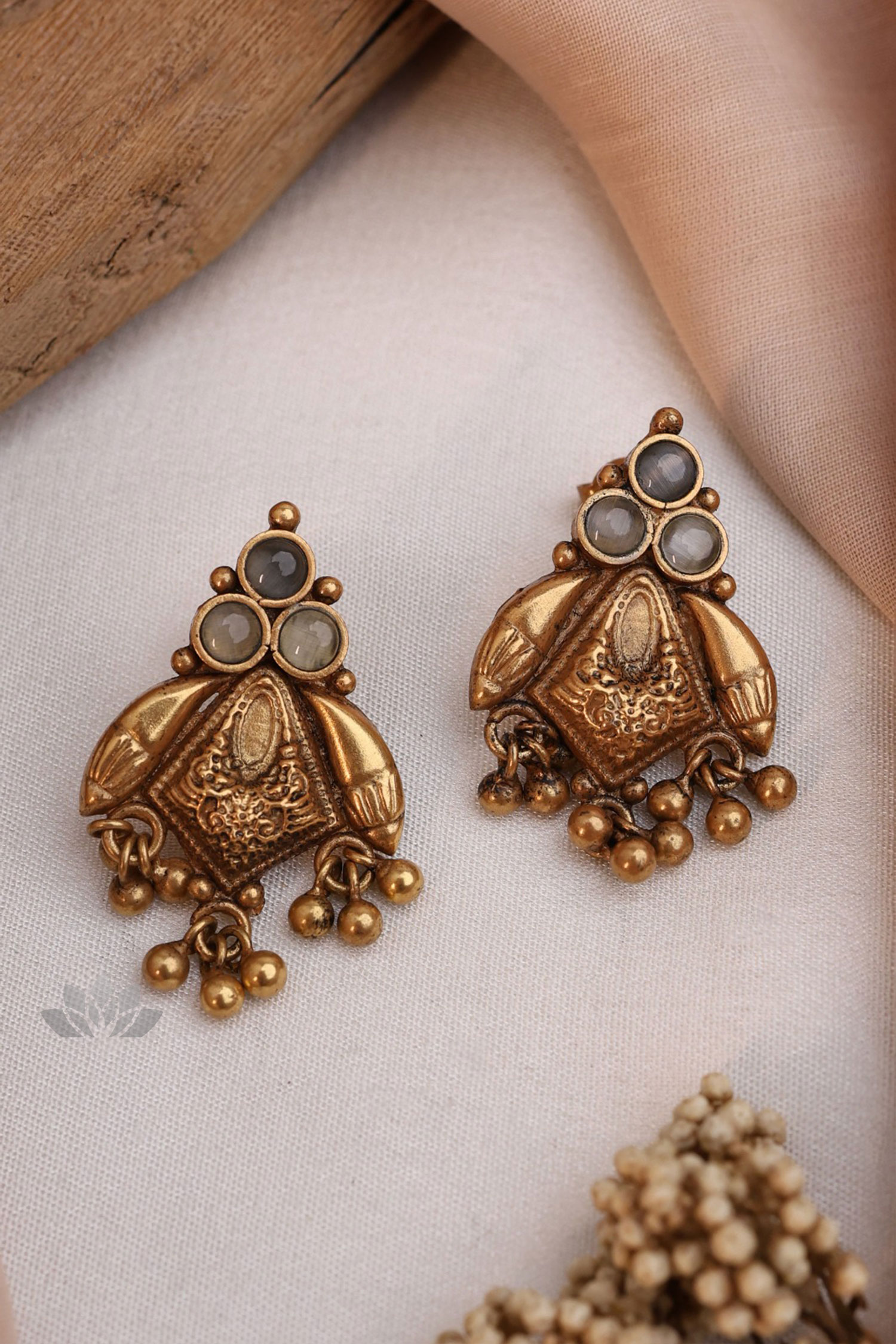 Gold plated 925 Silver – Antiqued finish nakshi earrings