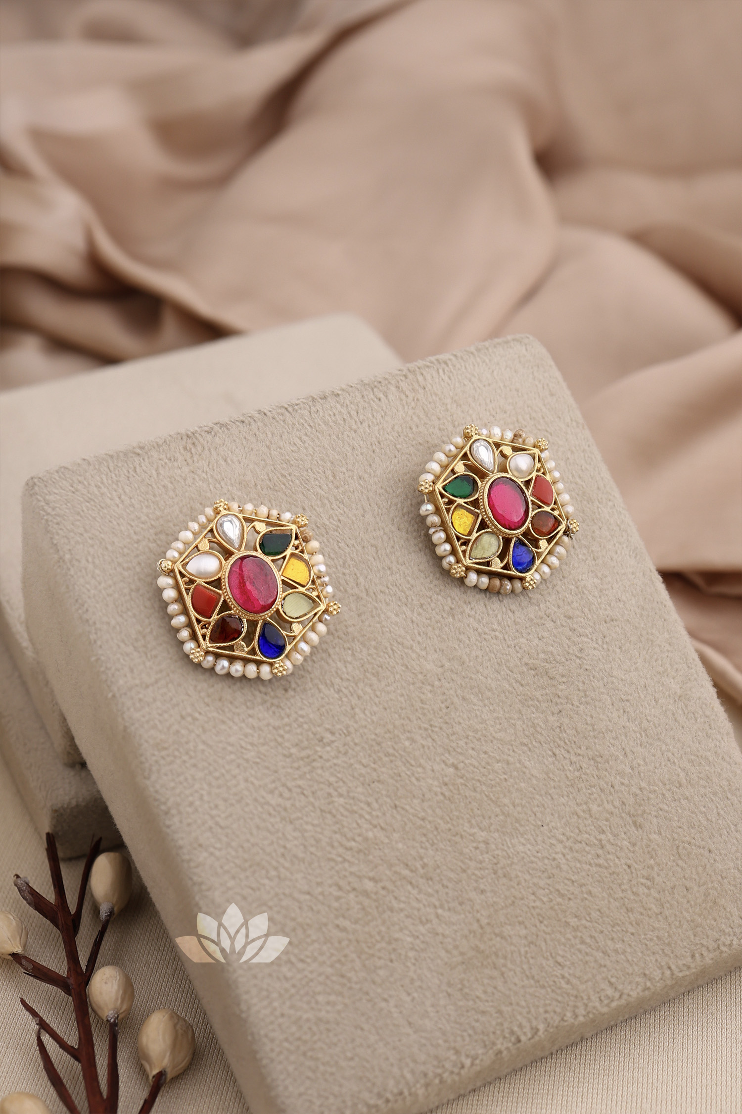 Gold plated 925 Silver – Multicolor Stone Kundan studs