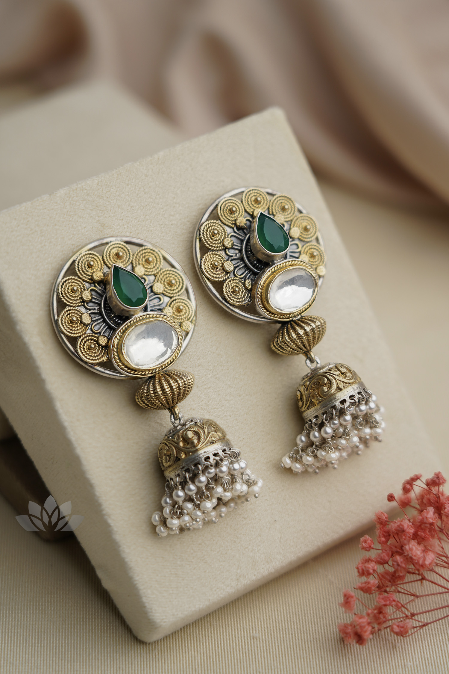 925 Silver – Dual tone statement jhumkas with moissanite stones
