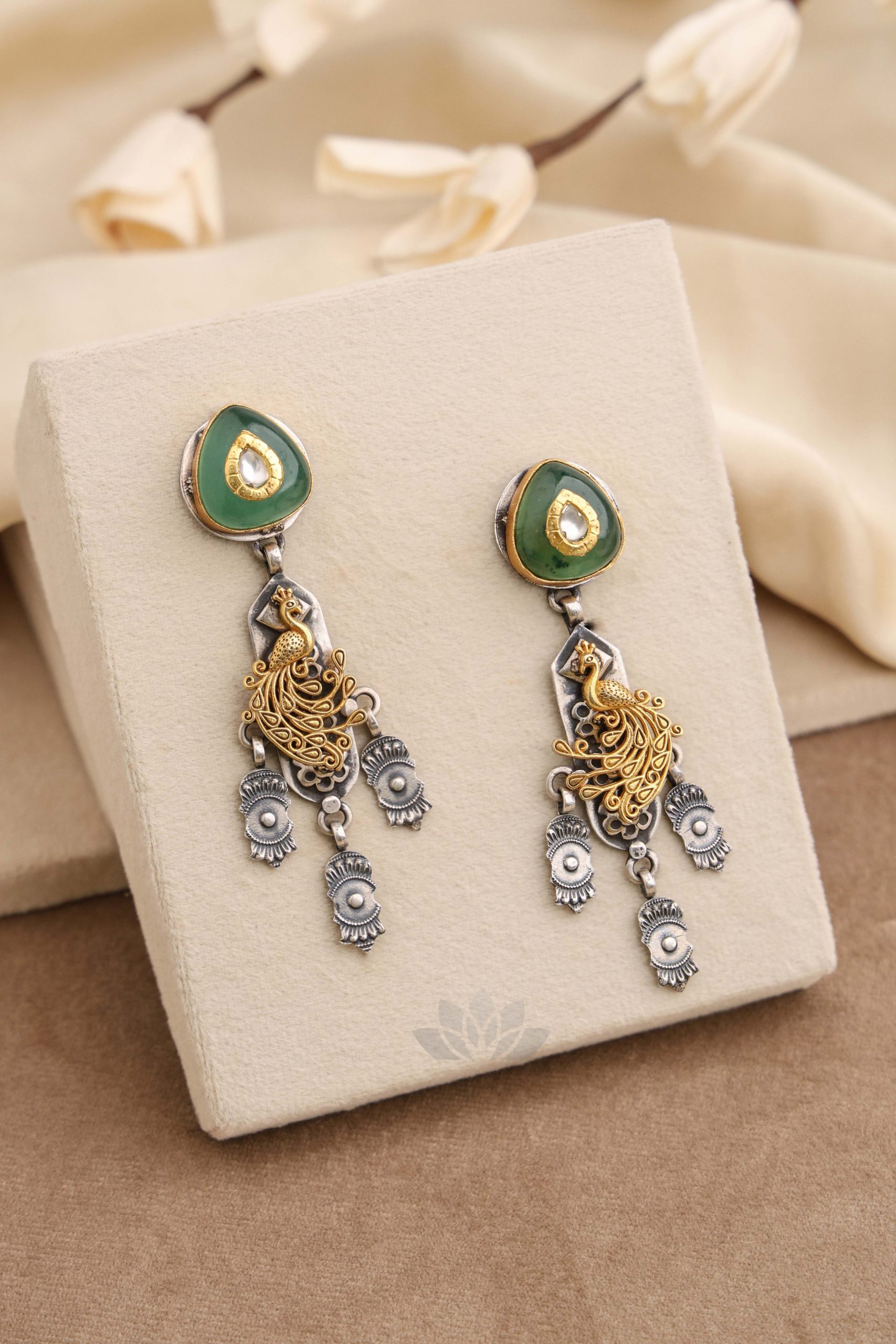 925 Silver – Dual tone earrings with stone tops and kundan jadai works on it