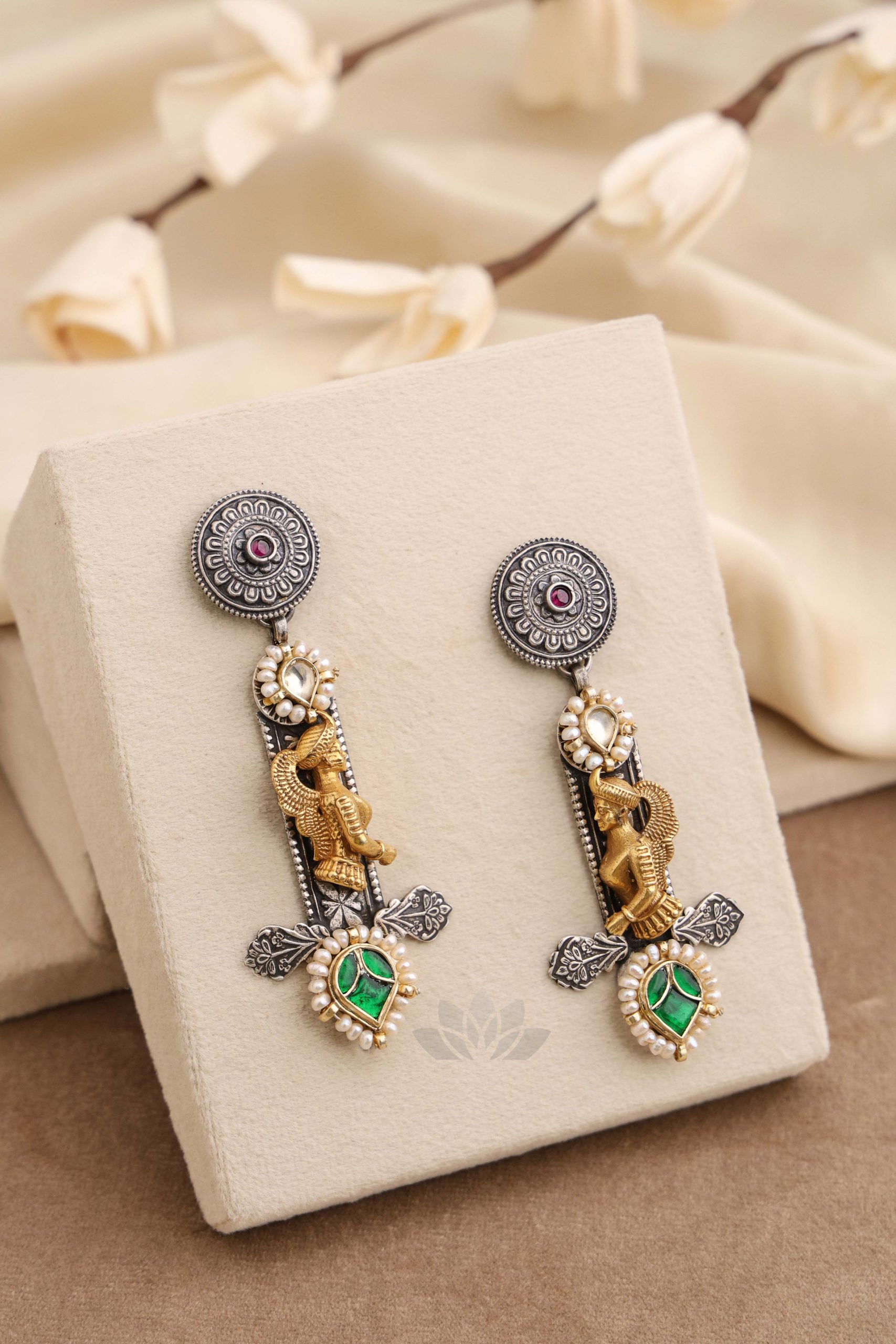 925 Silver – Dual tone kundan earrings