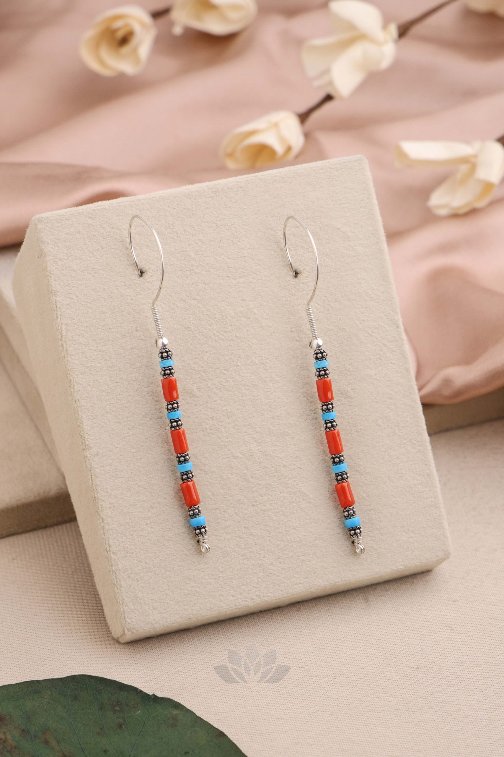 925 Silver – Turquoise and Coral Hoops
