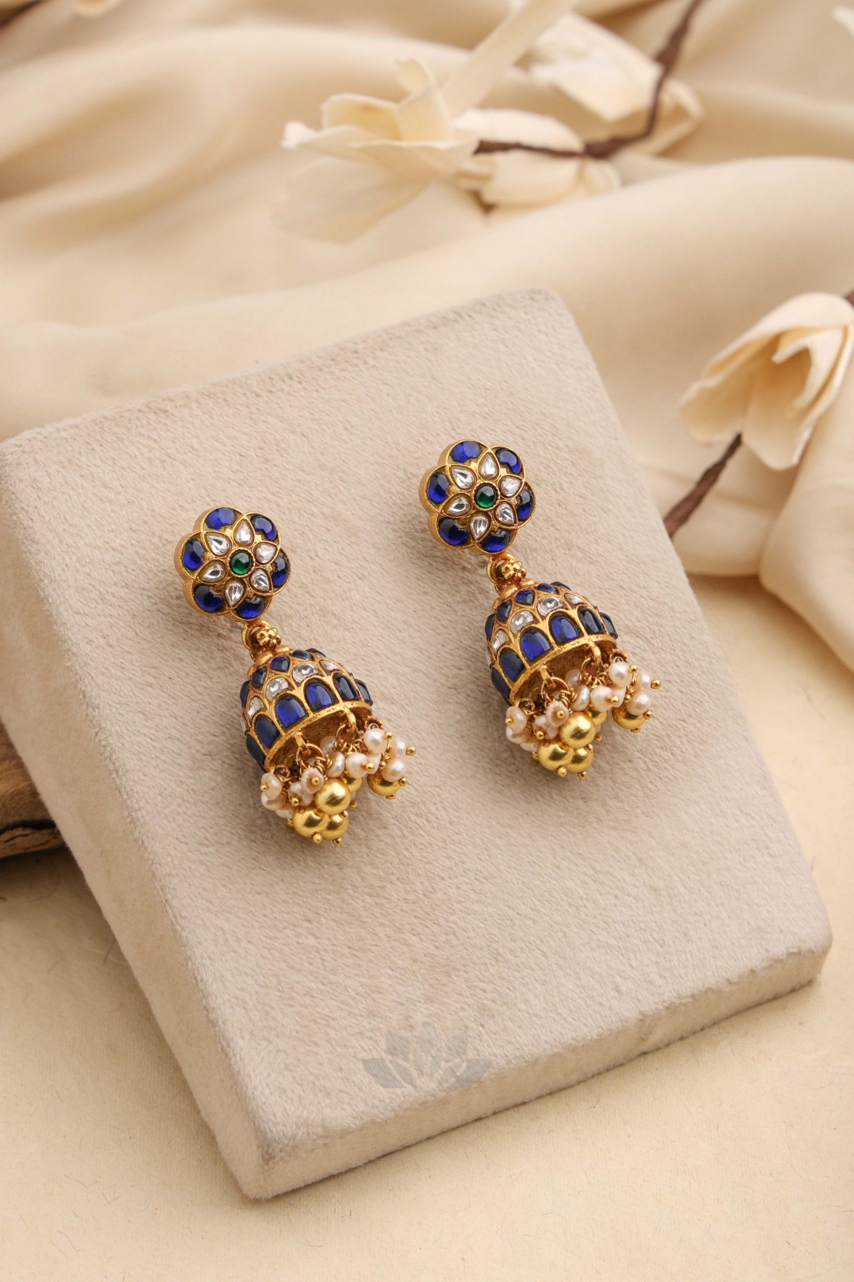 Gold plated 925 Silver – Kundan jhumkas