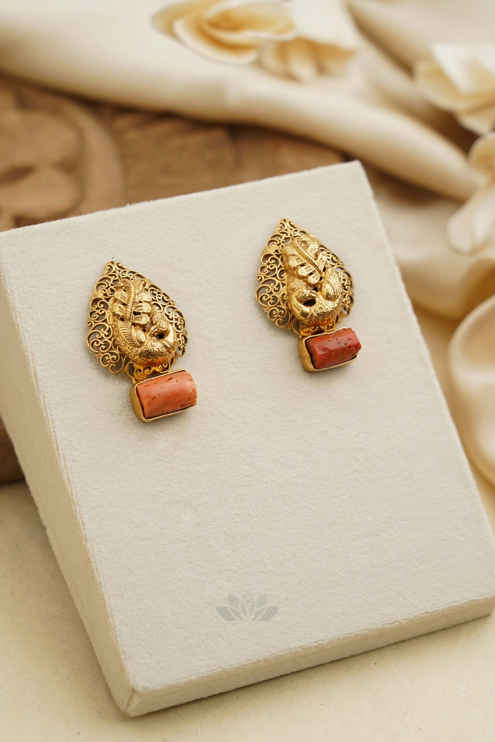 Gold plated 925 Silver – Antiqued finish coral earrings