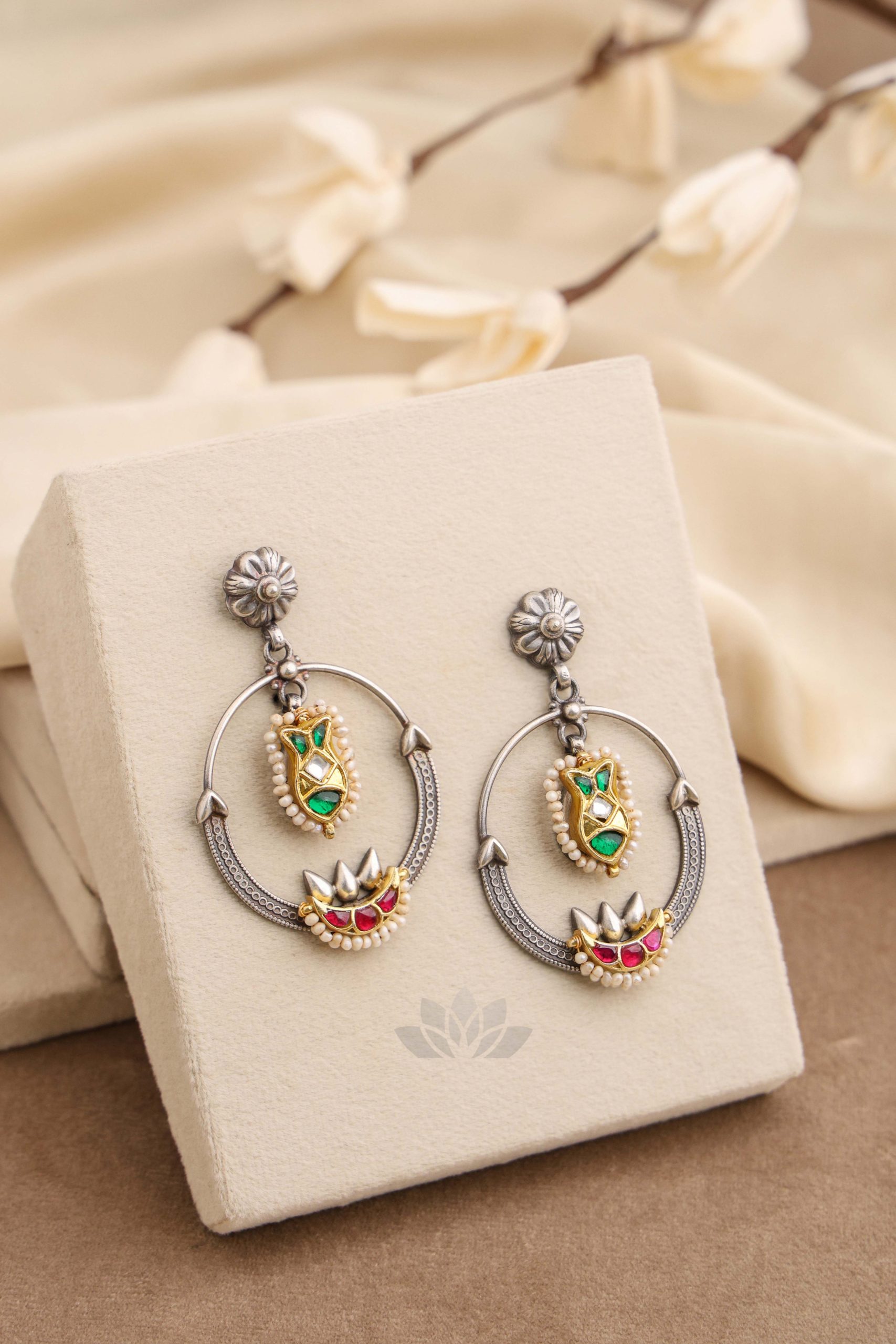 925 Silver – Dual tone kundan statement earrings