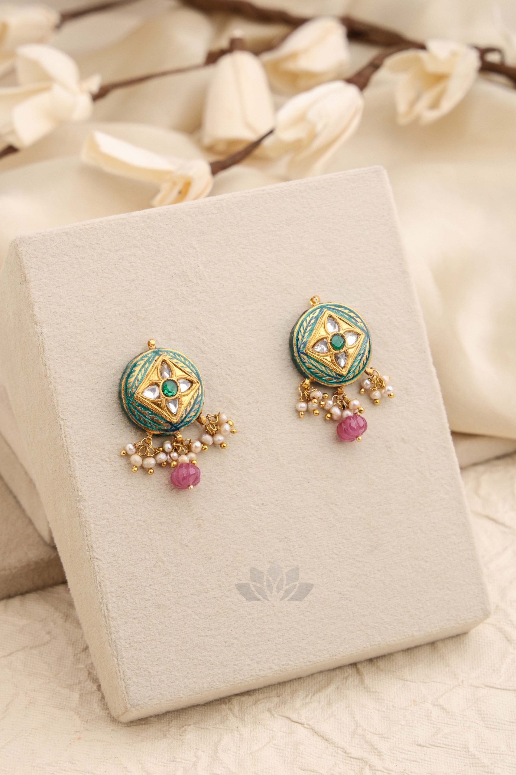 Gold plated 925 Silver – Meenakari studs with kundan works