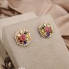 Gold plated 925 Silver – Kundan Earrings with carved beads