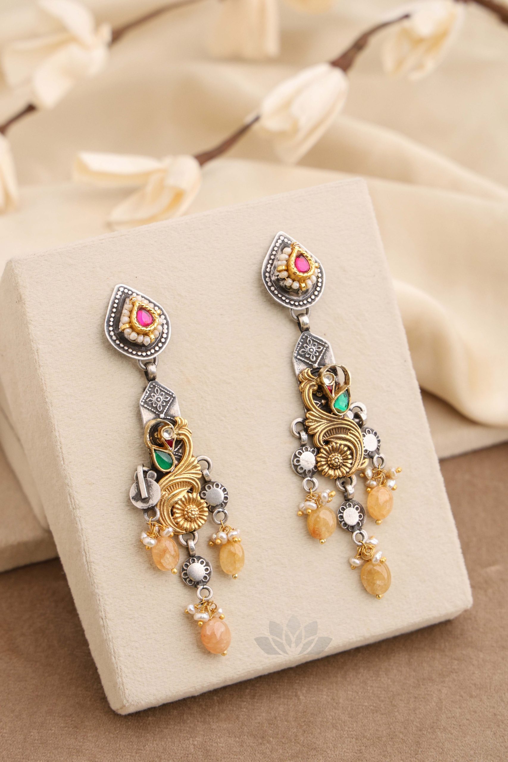 925 Silver – Dual tone kundan earrings