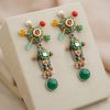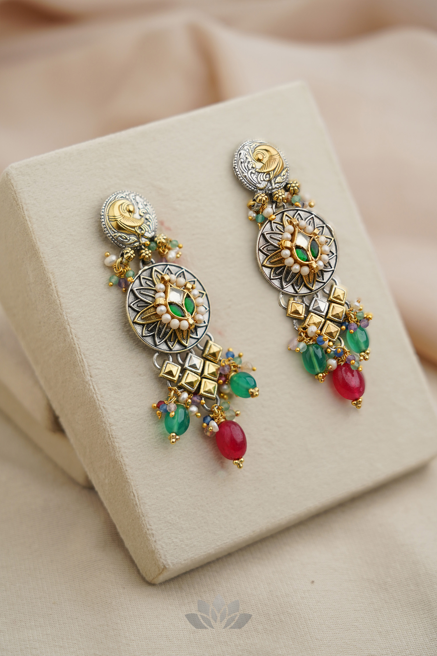 925 Silver – Dual tone statement kundan earrings with pearl and bead works and semi precious bead hangings