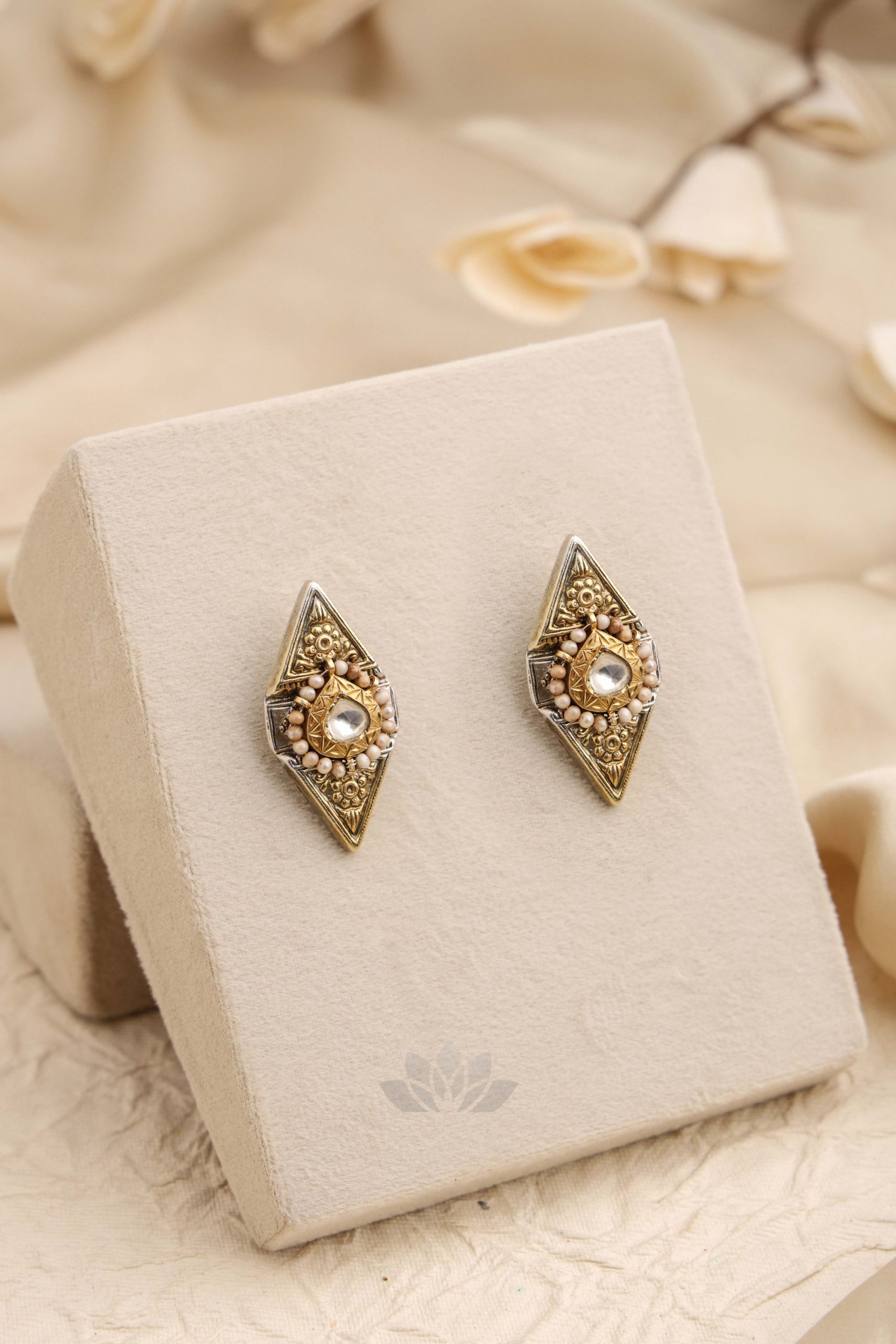 925 Silver – Dual tone kundan studs