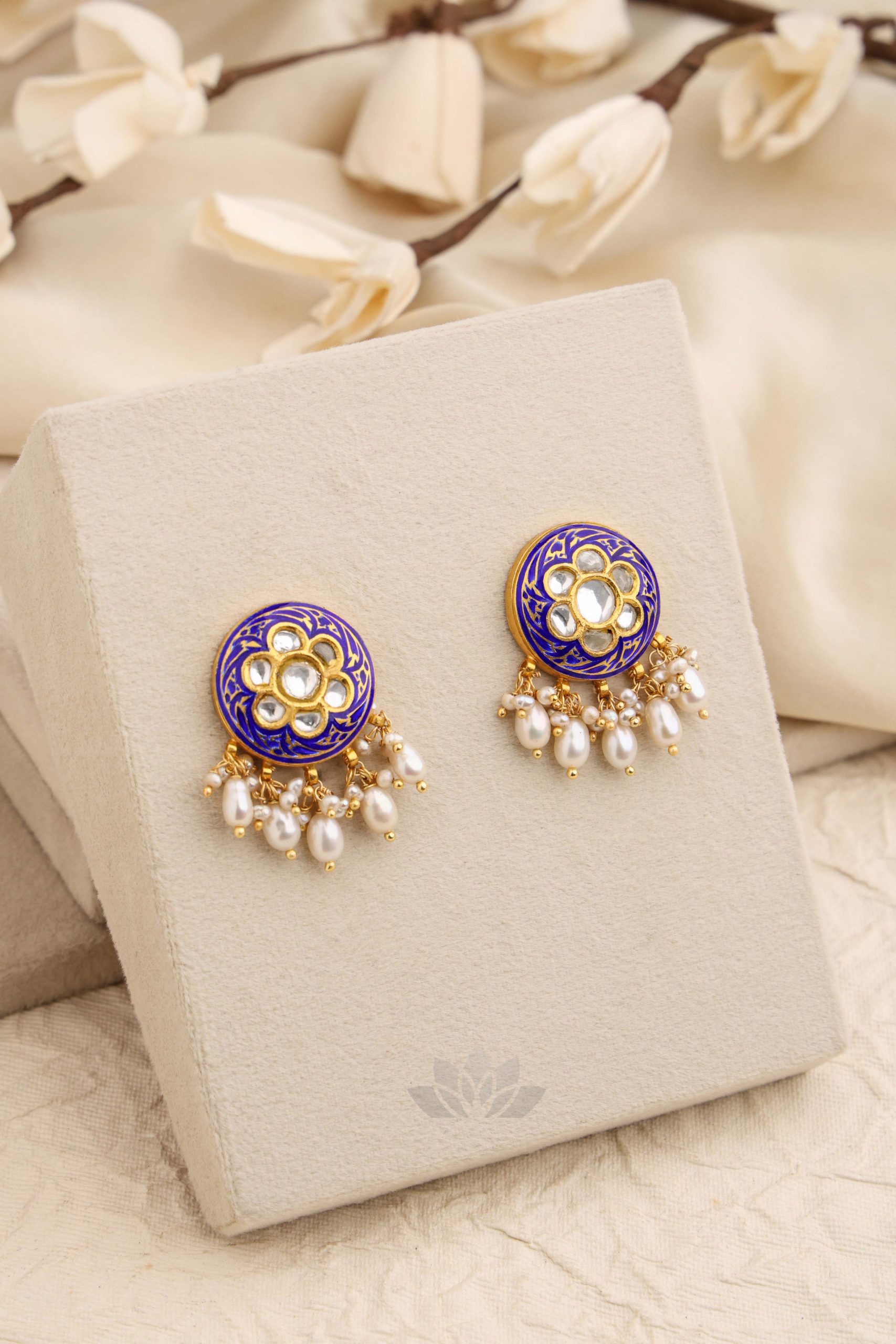 Gold plated 925 Silver – Meenakari studs with kundan works