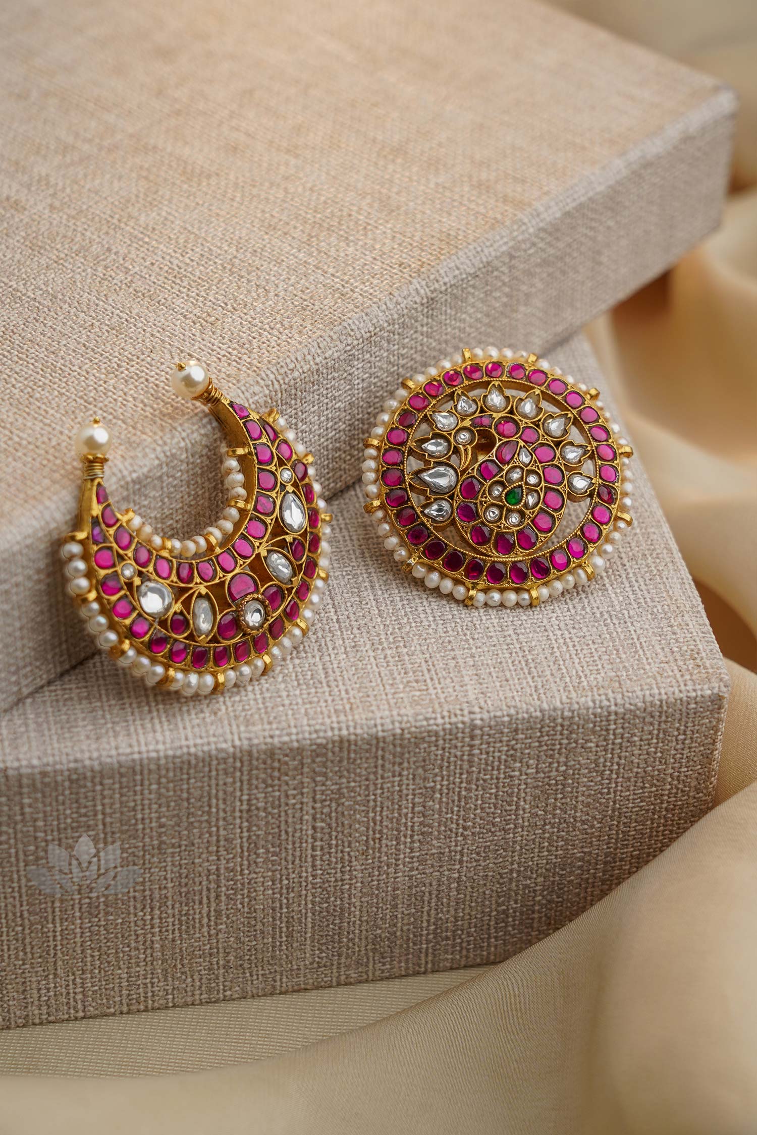 Gold plated 925 silver – Traditional pearl kundan bridal hair accessory set, representing the Sun and Moon motifs