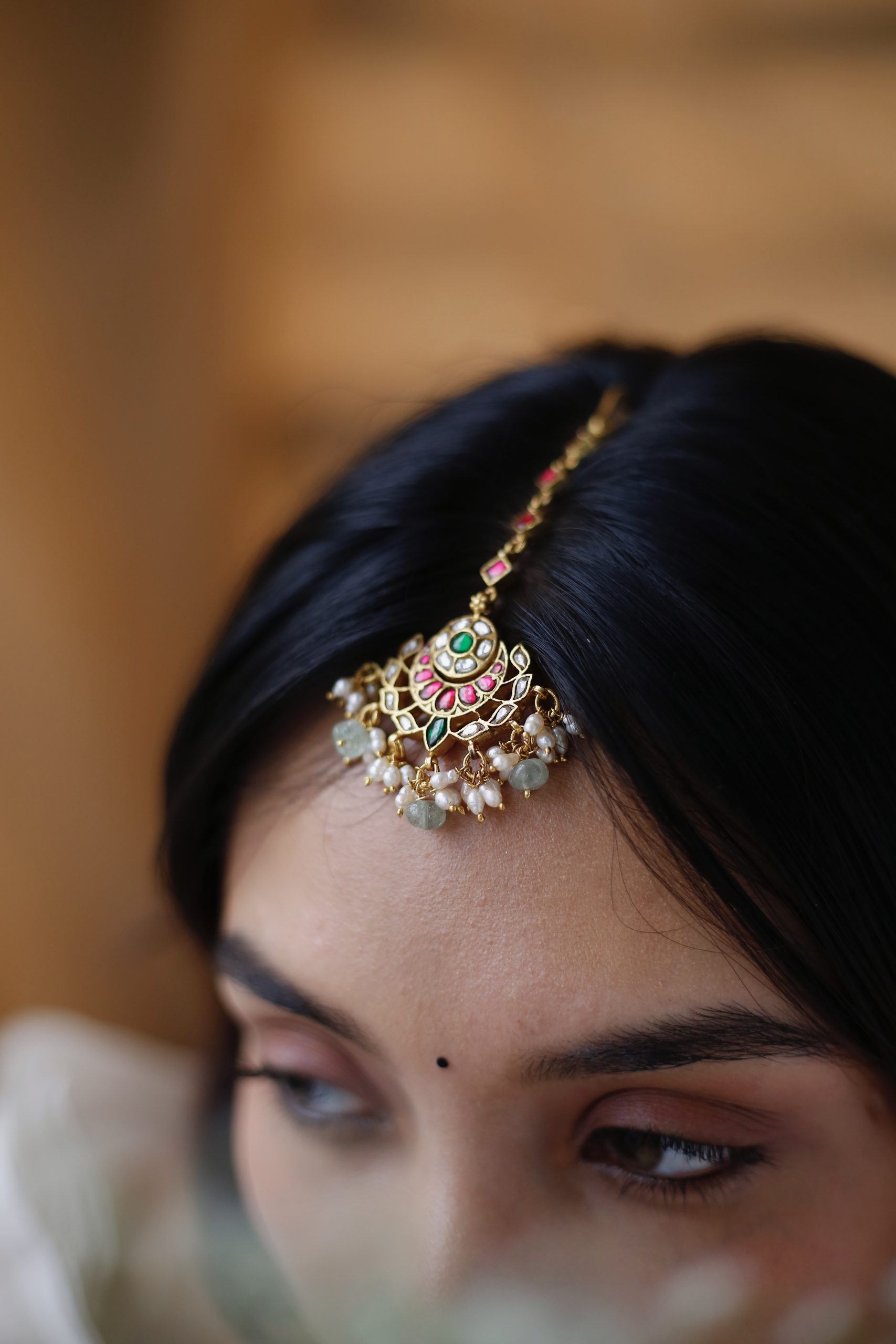 Gold plated 925 silver- Kundan Bridal maangtikka
