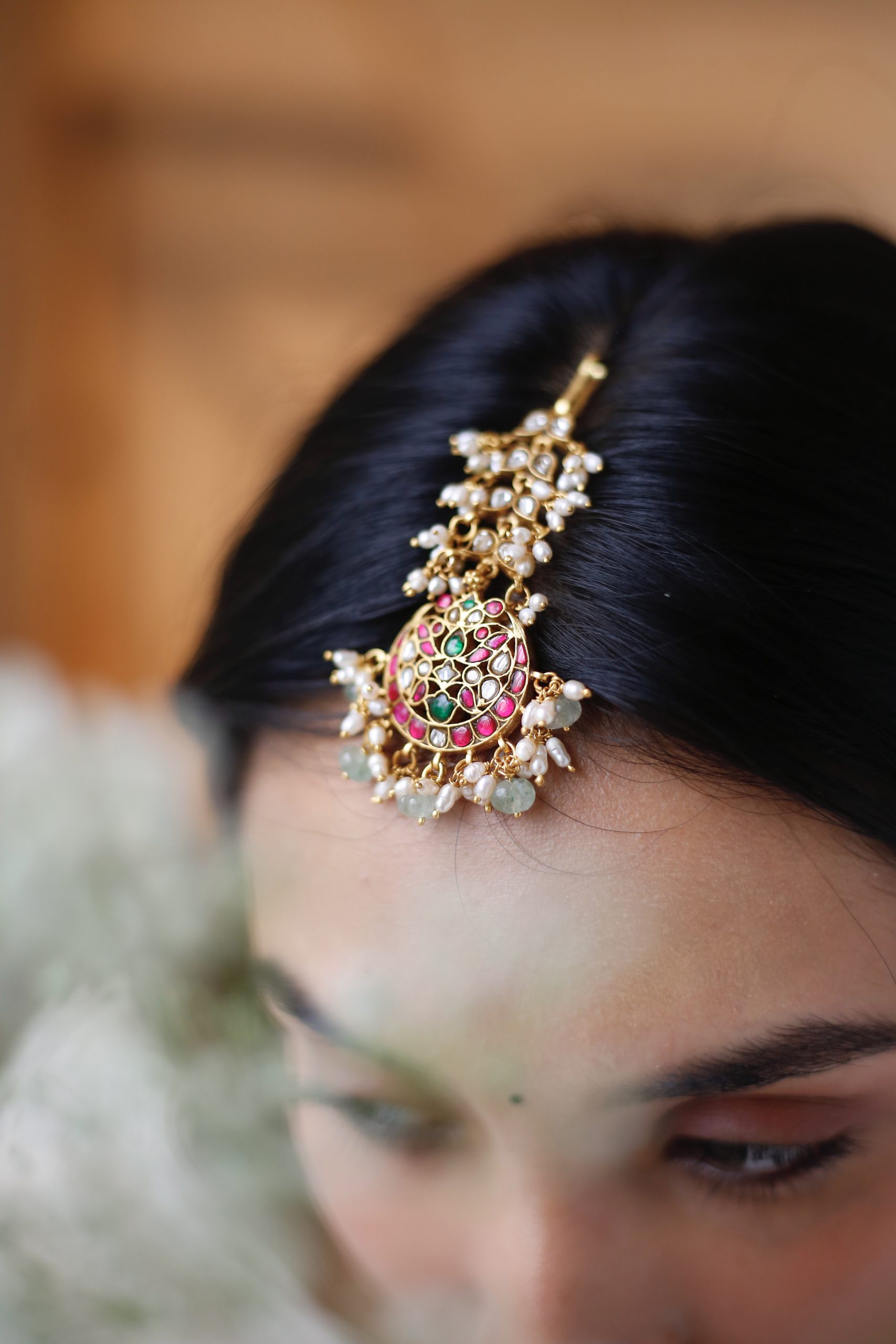 Gold plated 925 silver- Kundan Bridal maangtikka