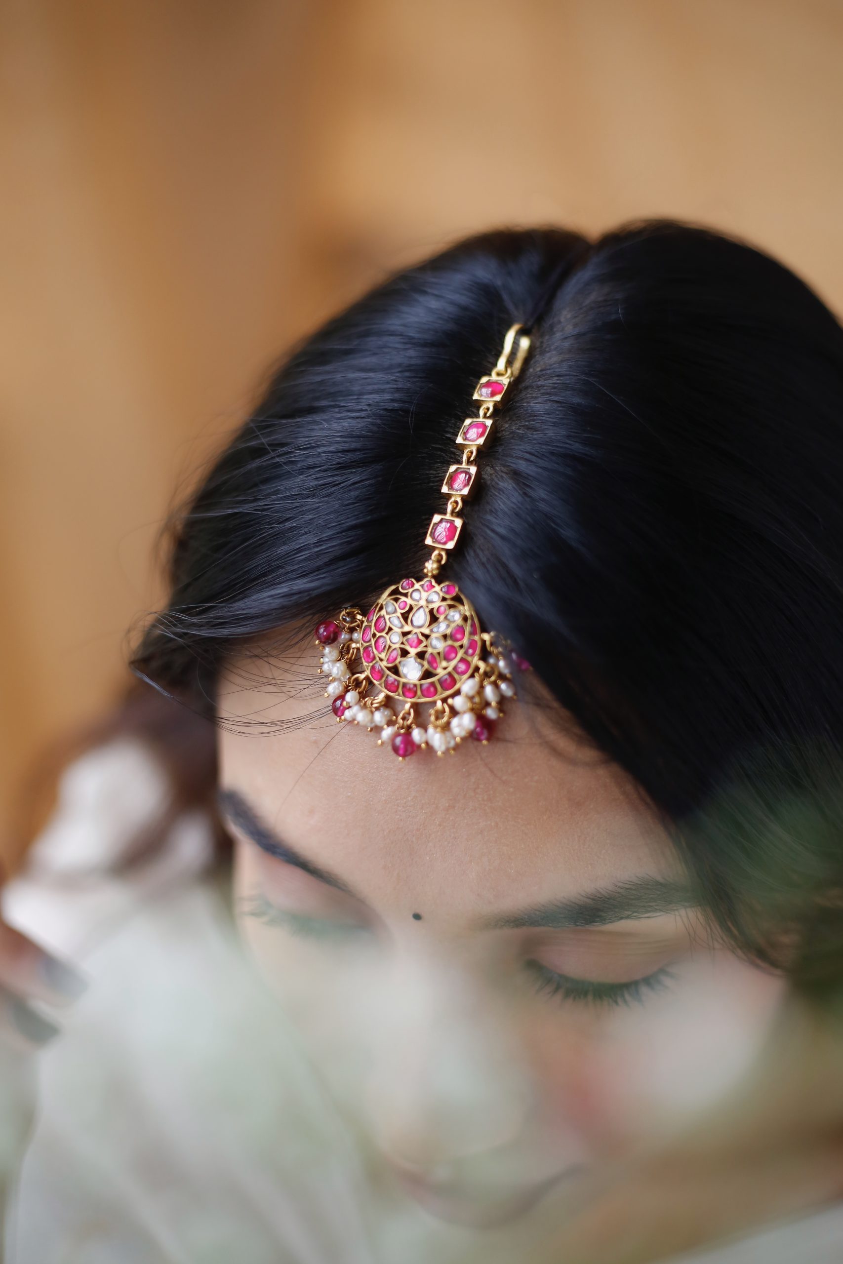 Gold plated 925 silver- Kundan Bridal maangtikka