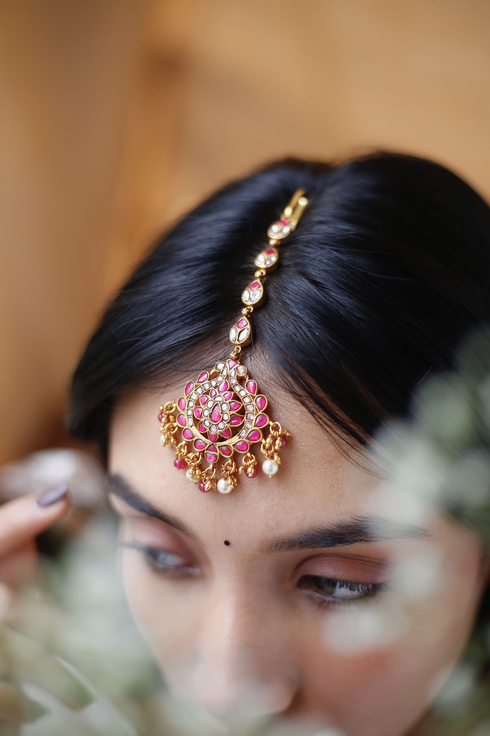 Gold plated 925 silver- Kundan Bridal maangtikka