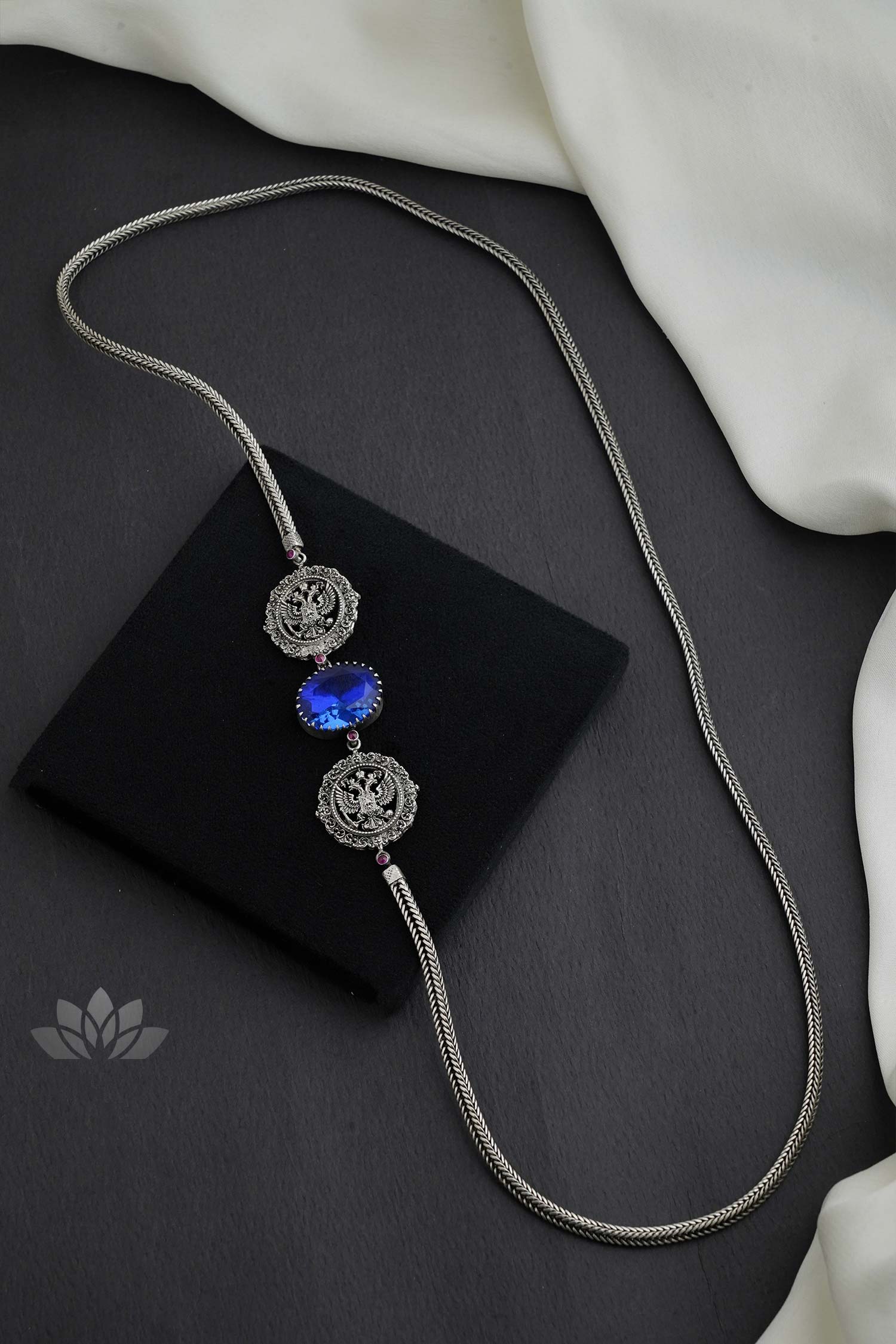 925 Silver Mope chain with stone motif and nakshi work