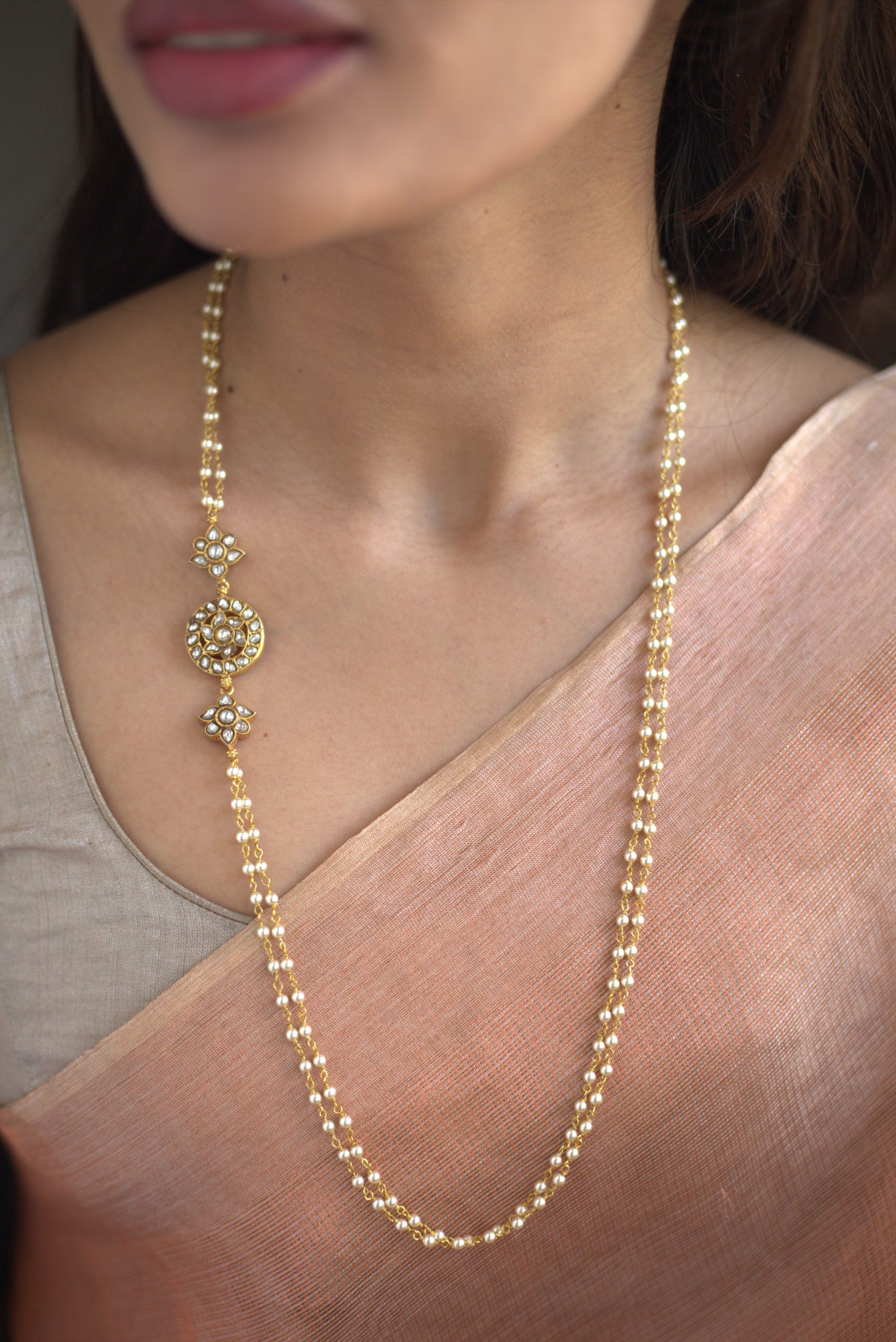 Gold plated 925 Silver – Pearl mope chain with kundan motif