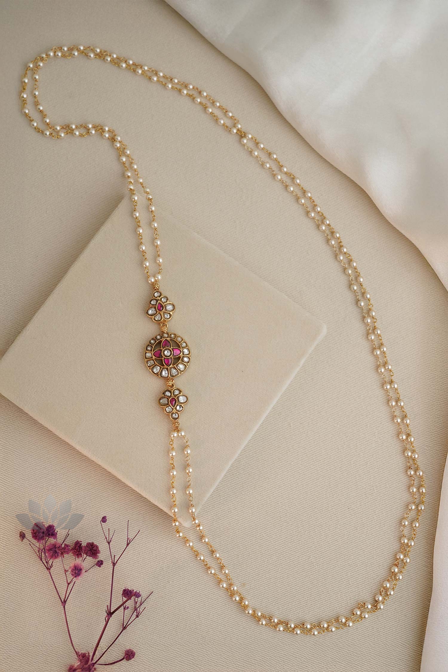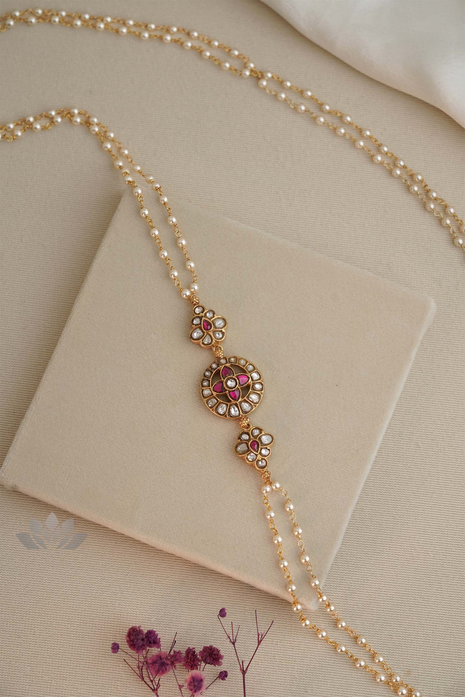 Gold plated 925 Silver – Pearl mope chain with kundan motif