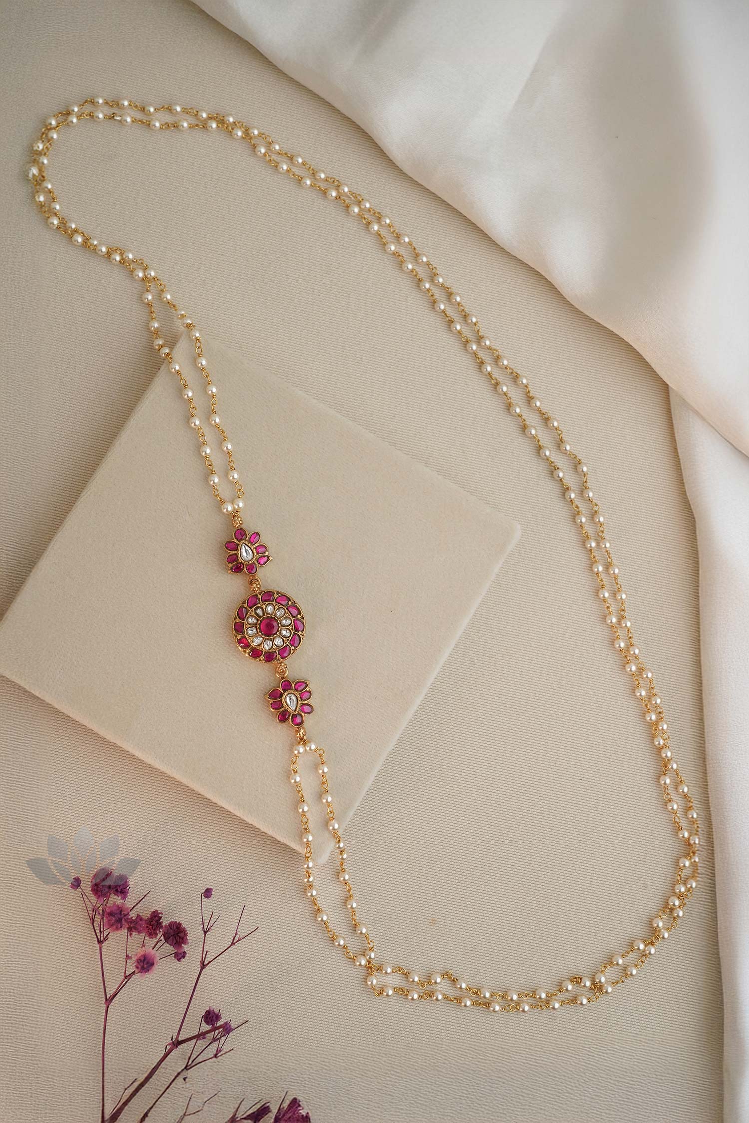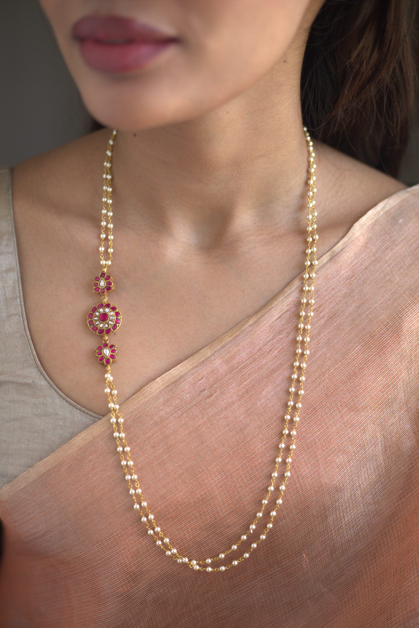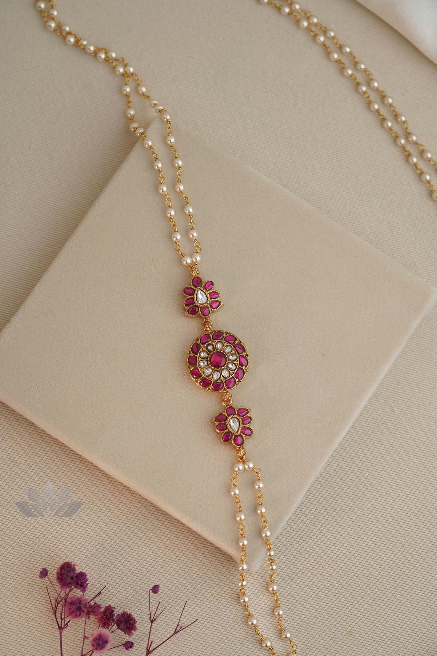 Gold plated 925 Silver – Pearl mope chain with kundan motif