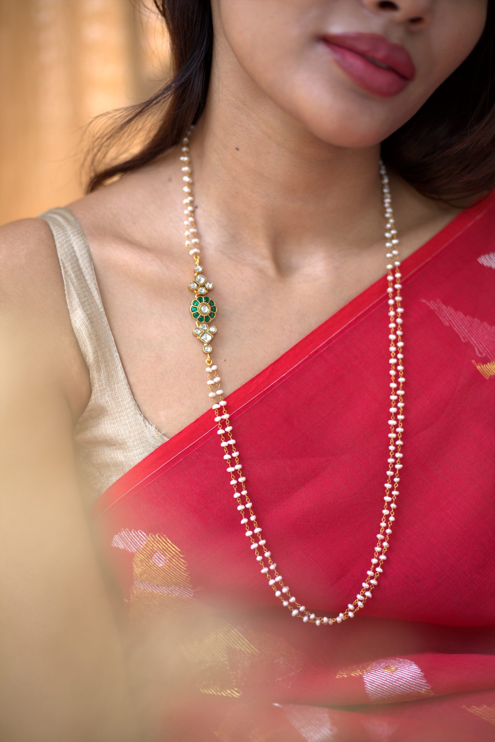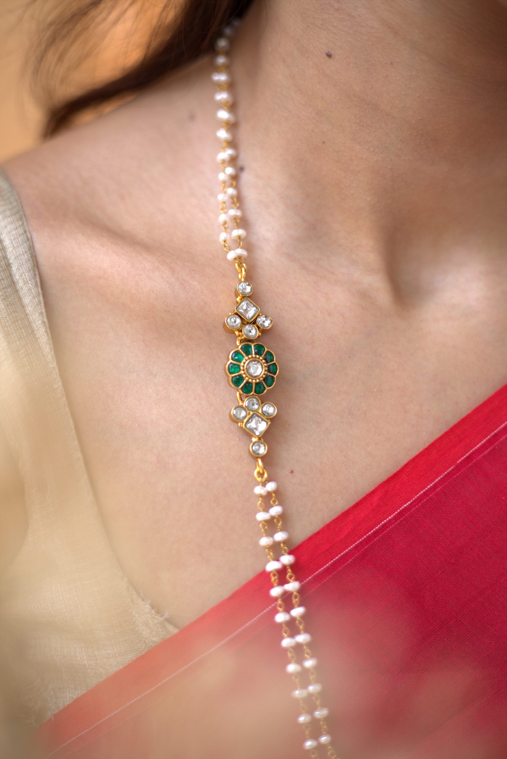 Gold plated 925 Silver – Pearl Kundan Mopechain