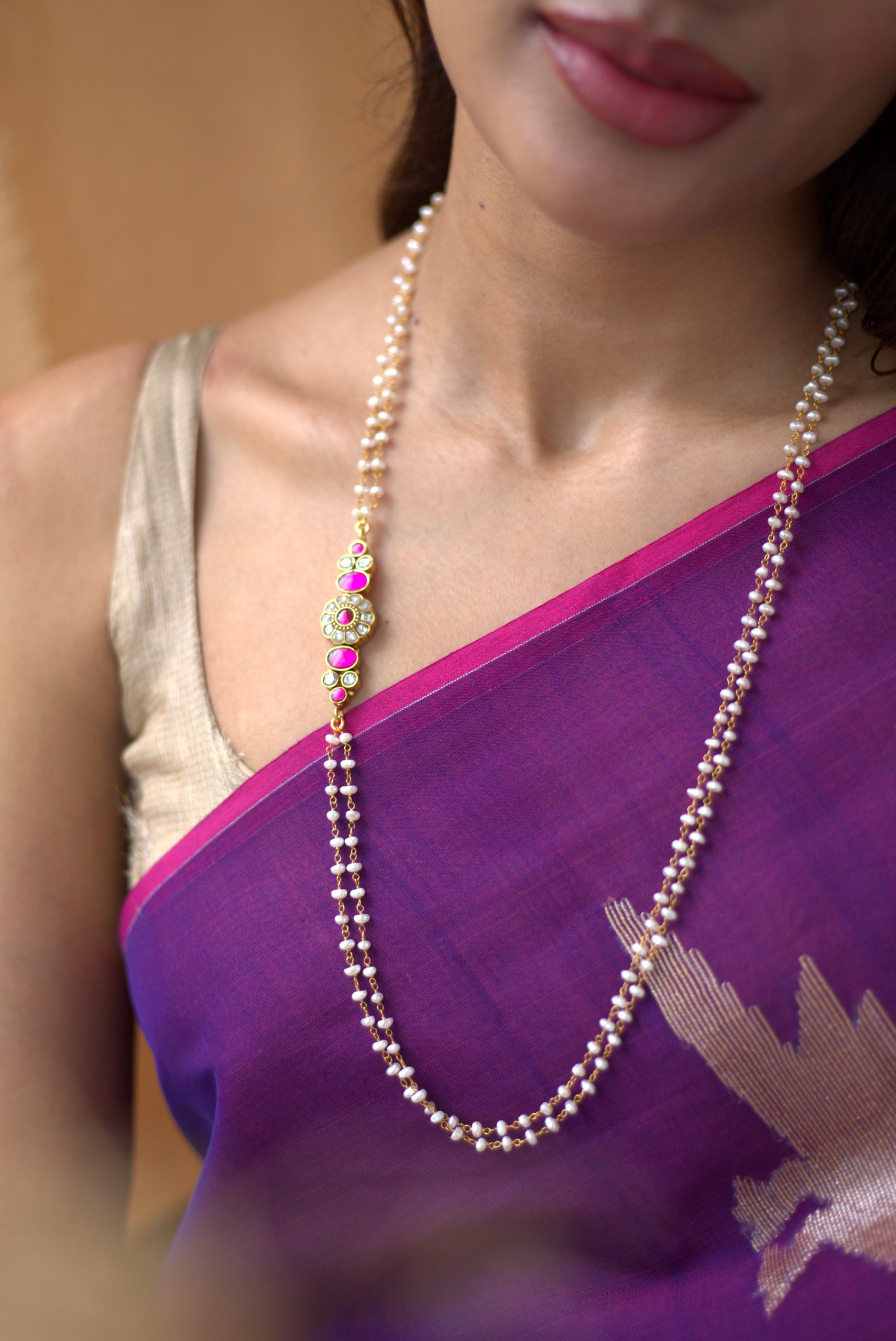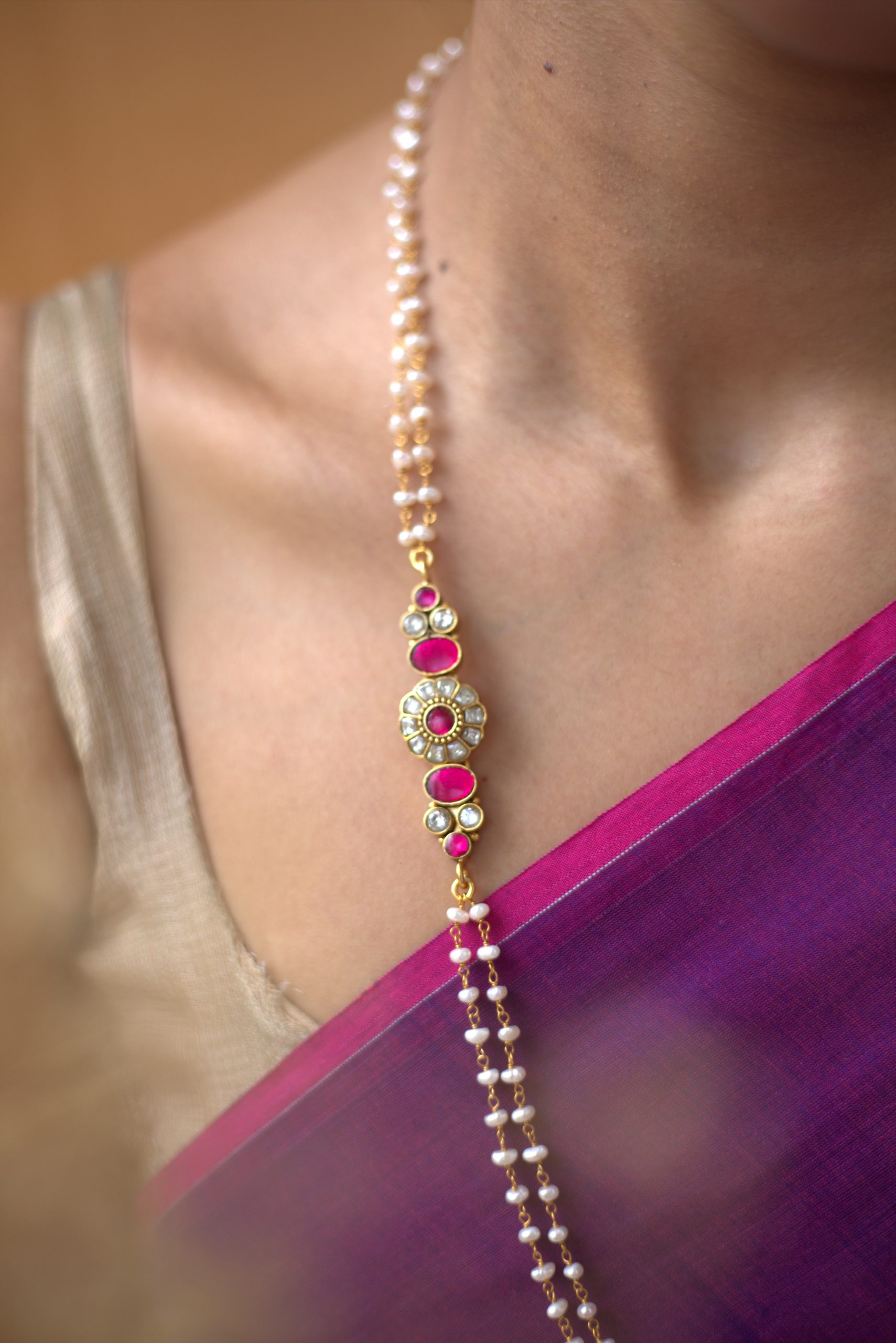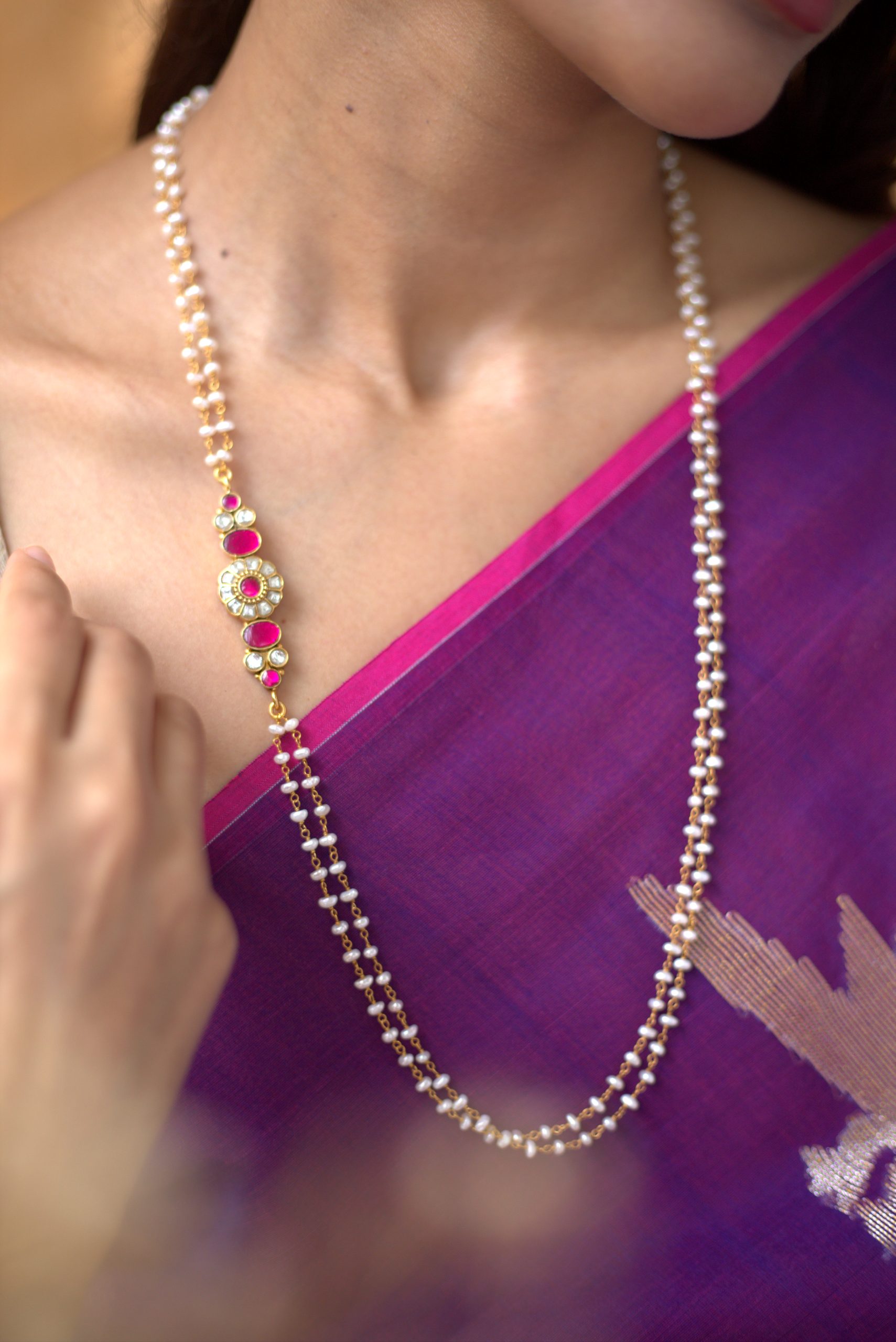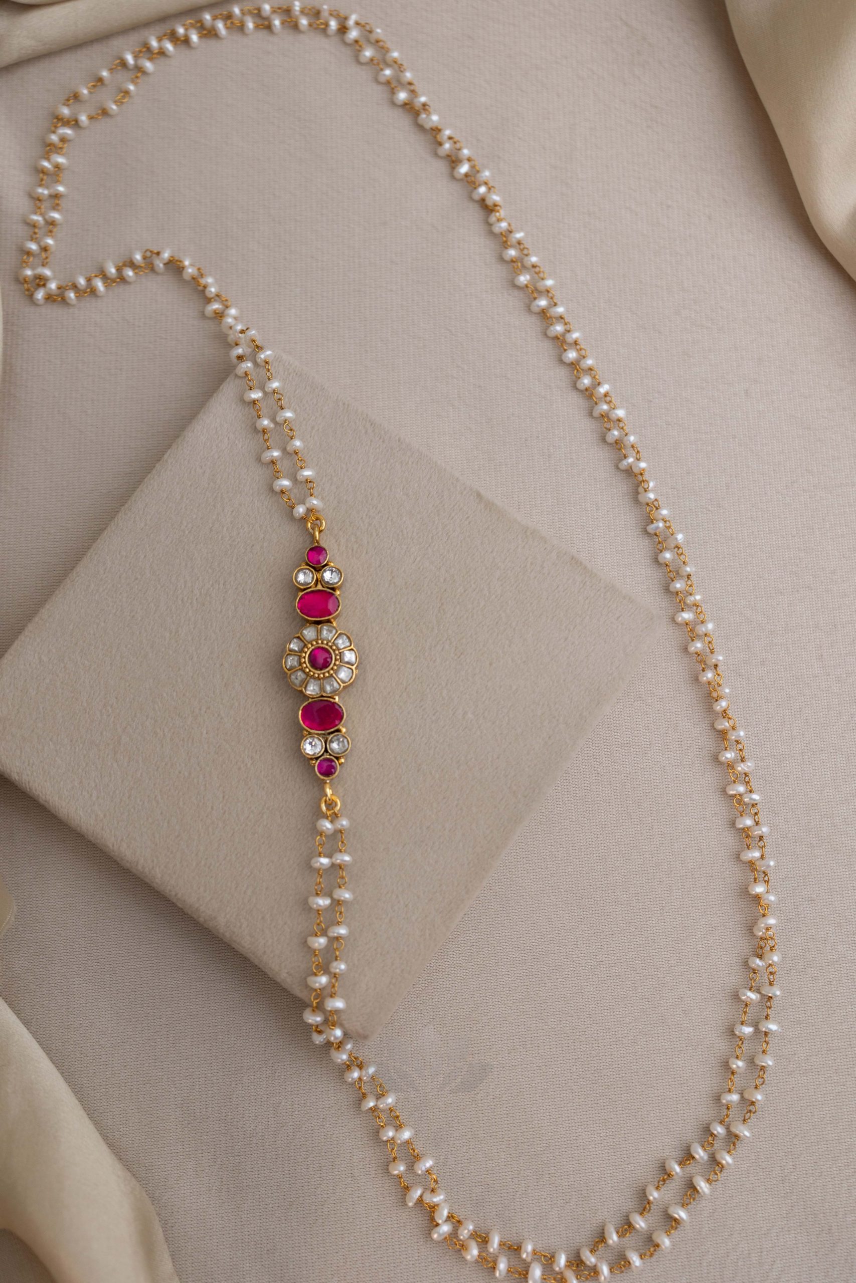 Gold plated 925 Silver – Pearl Kundan Mopechain