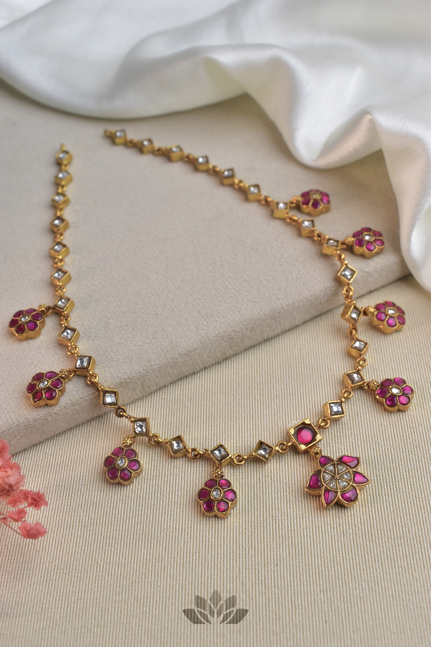 Gold plated 925 Silver – Necklace topped with kundan works