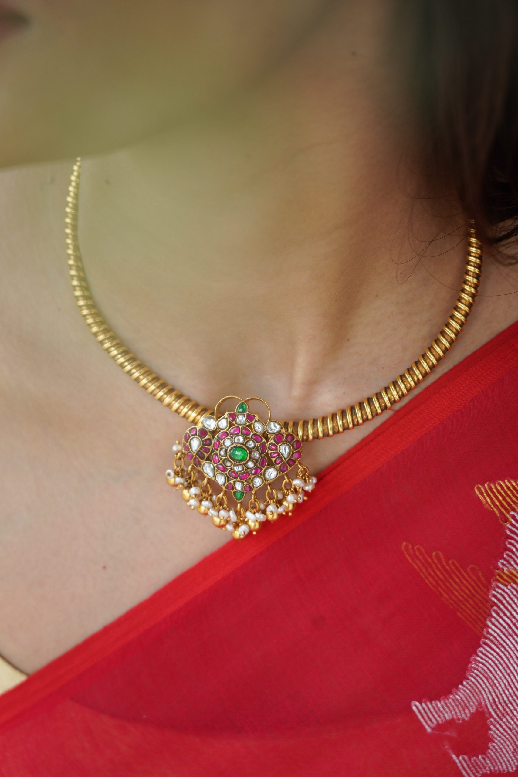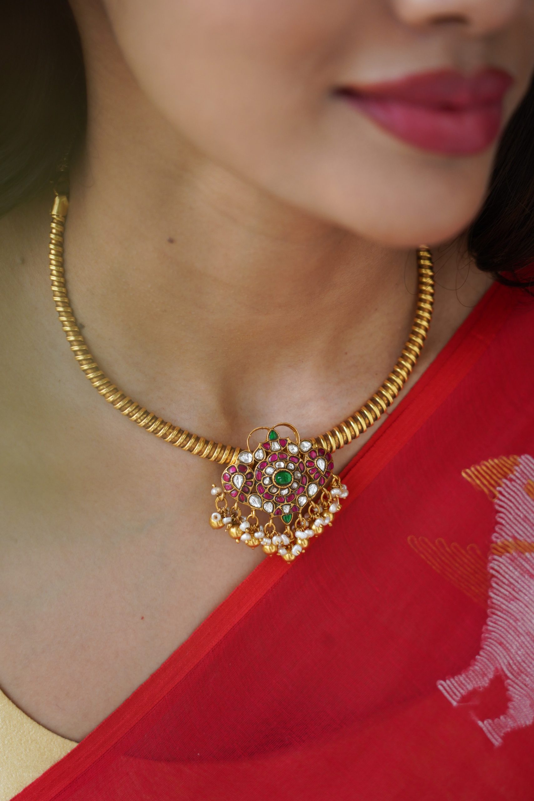 Gold plated 925 Silver – Kundan Hasli