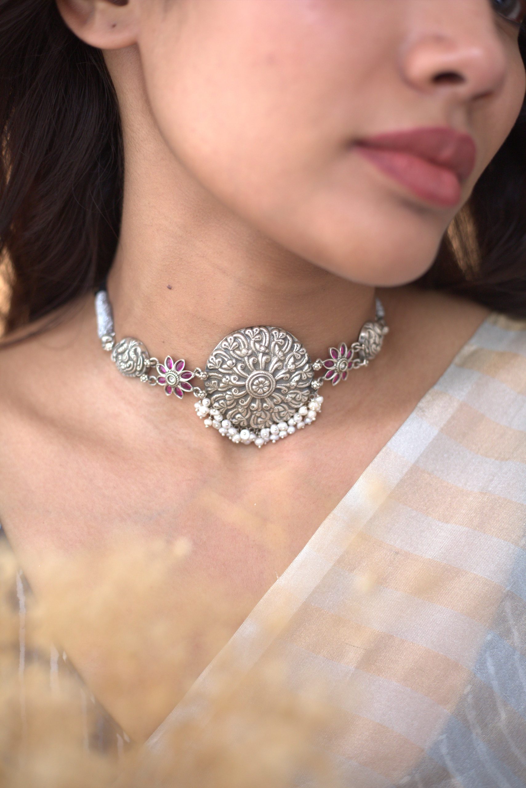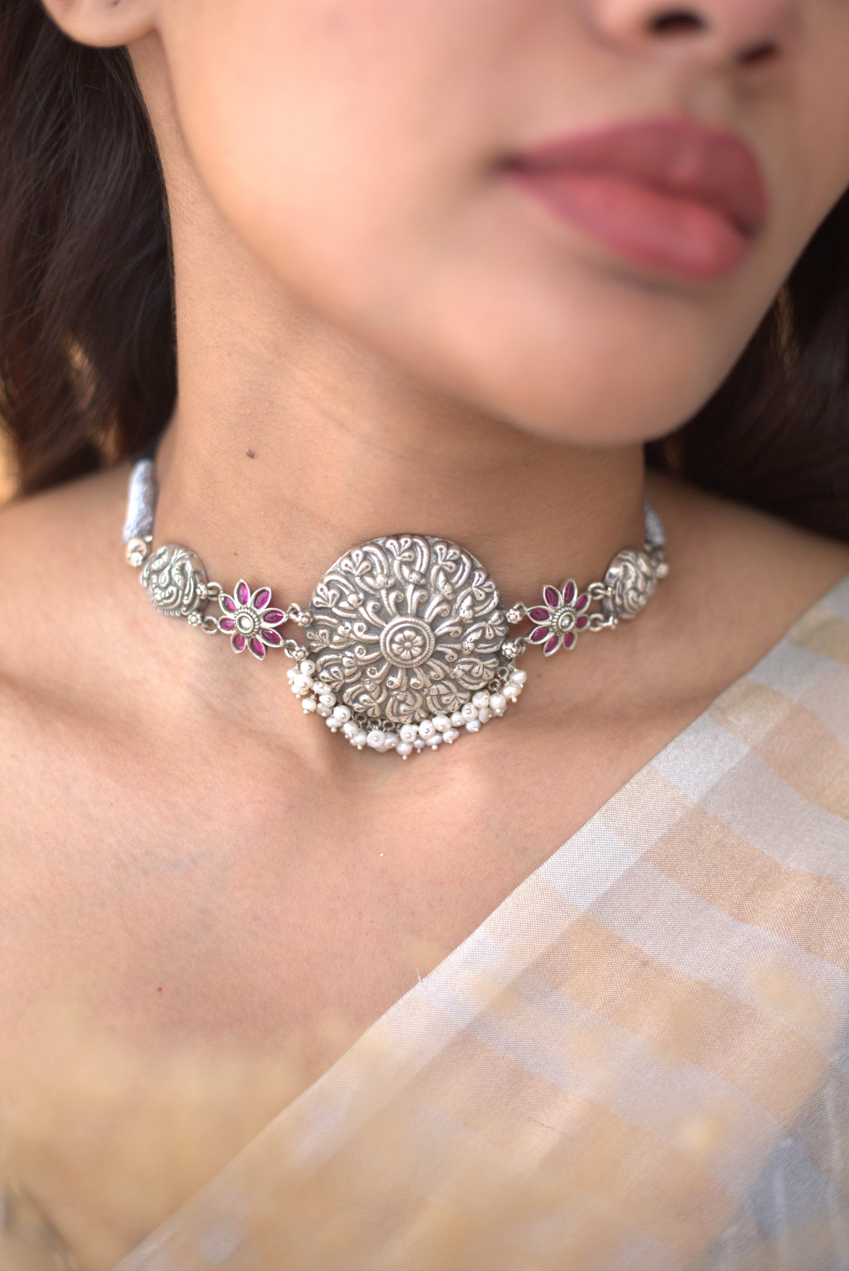 925 Silver – Kemp stone nakshi choker