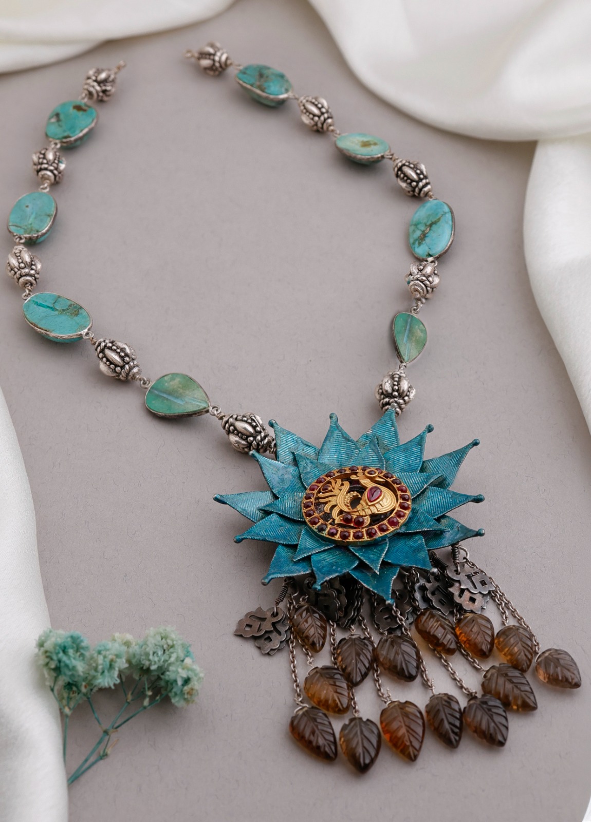 925 Silver – Dual tone turquoise necklace