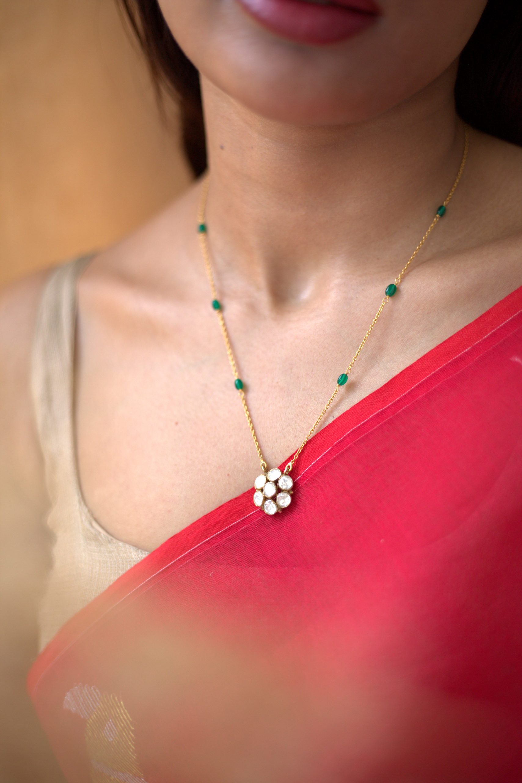 Gold plated 925 Silver – Moissanite Stone Long Pendant chain