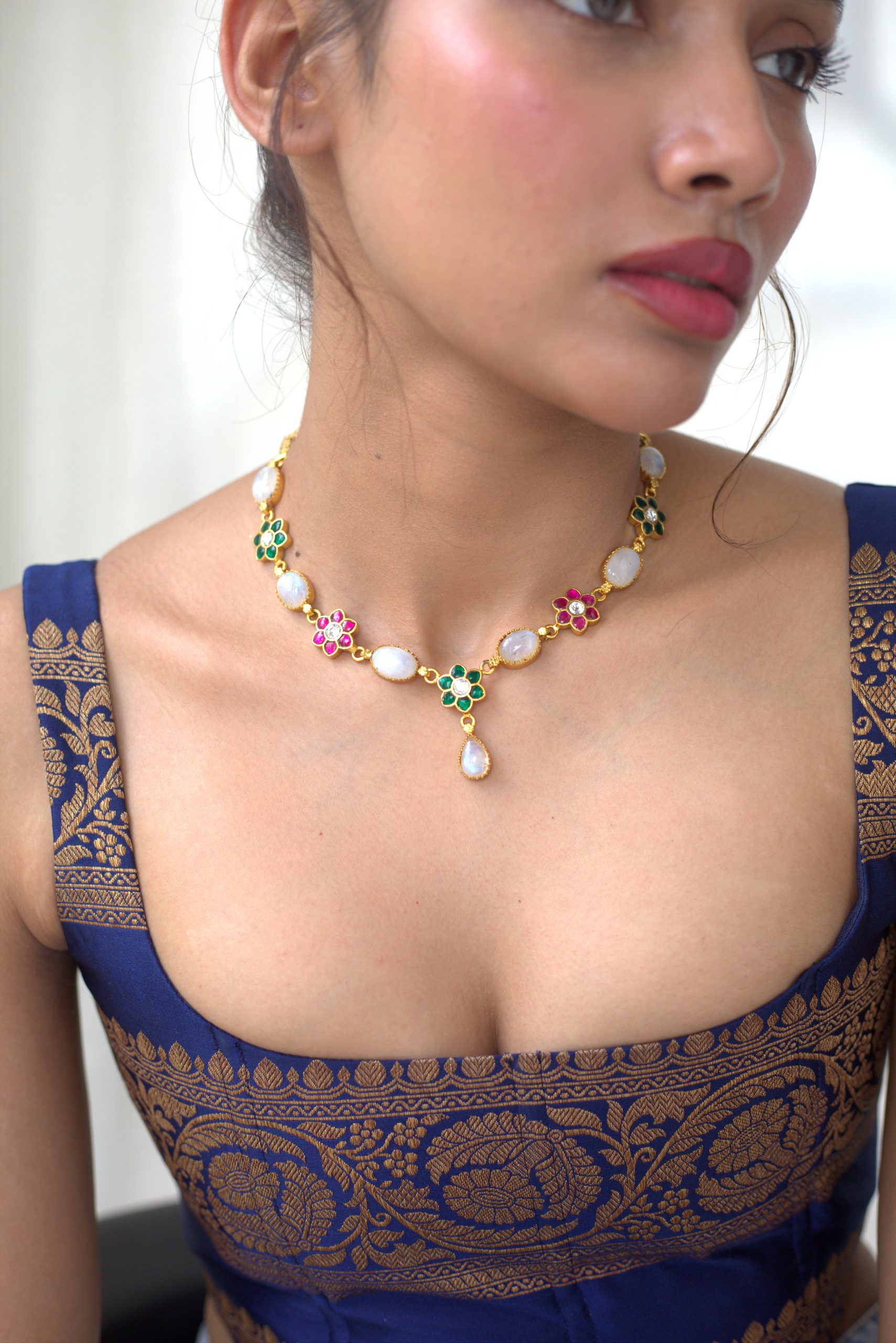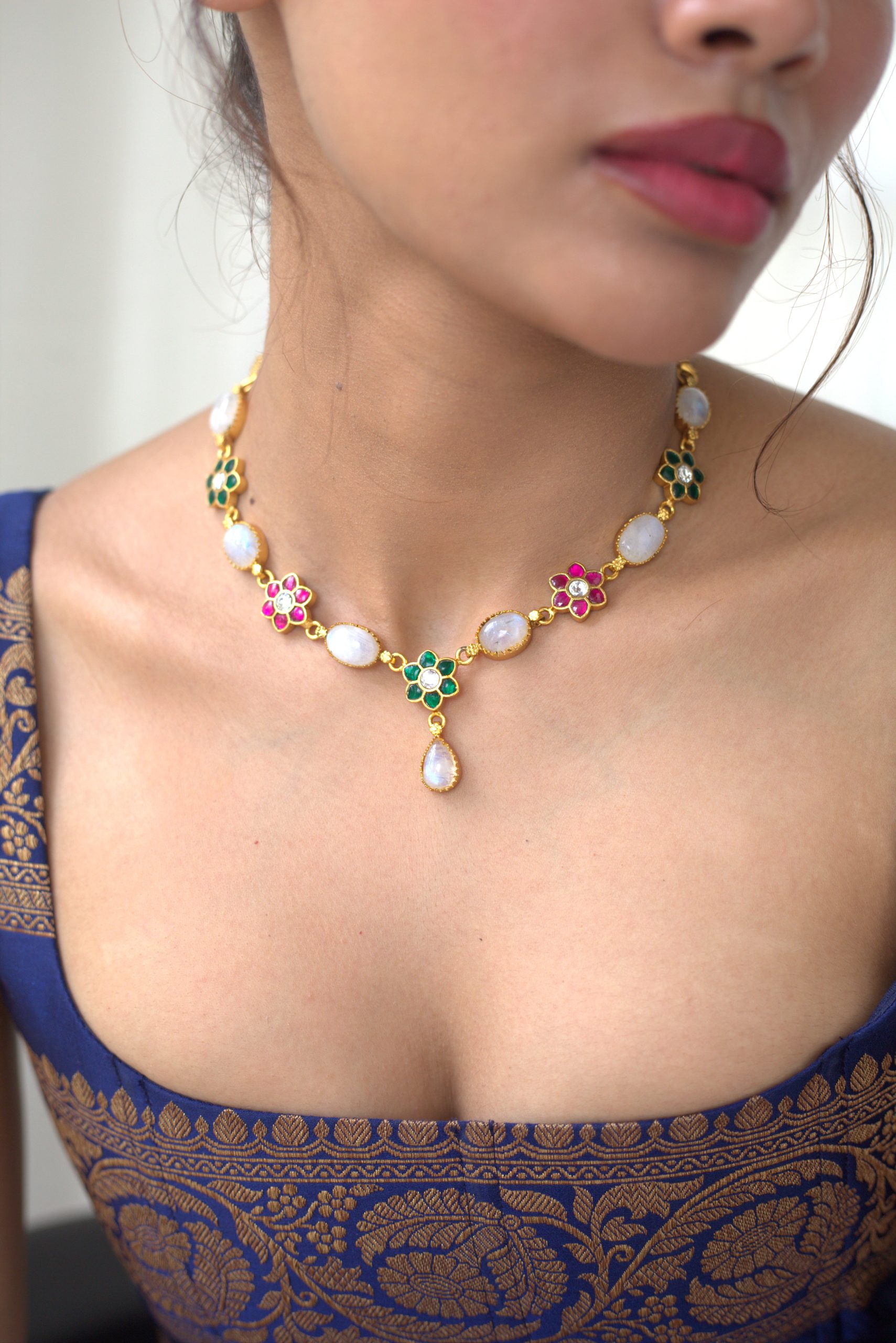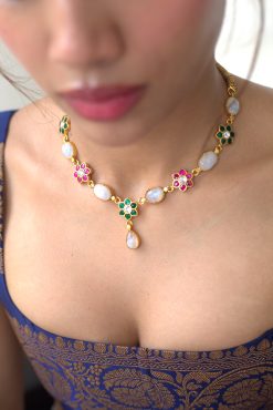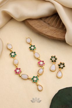 Gold plated 925 Silver – Stone necklace set with kundan works